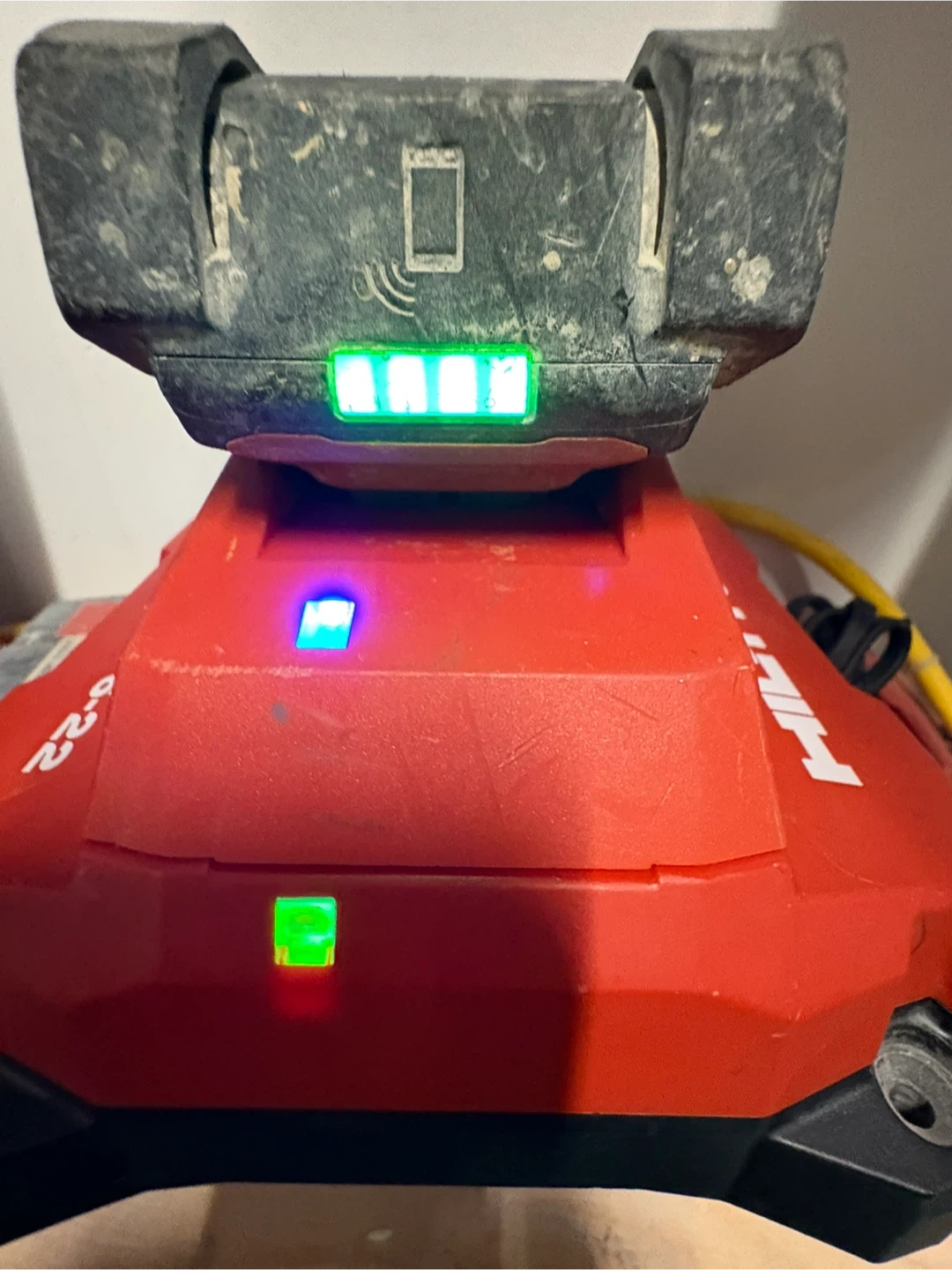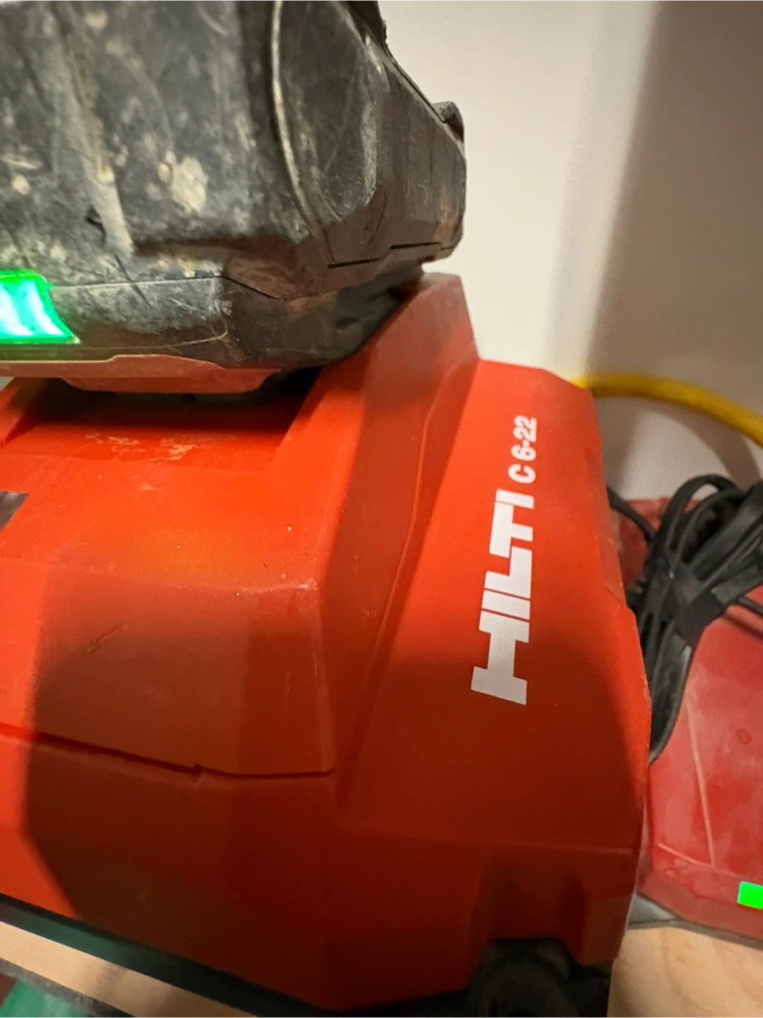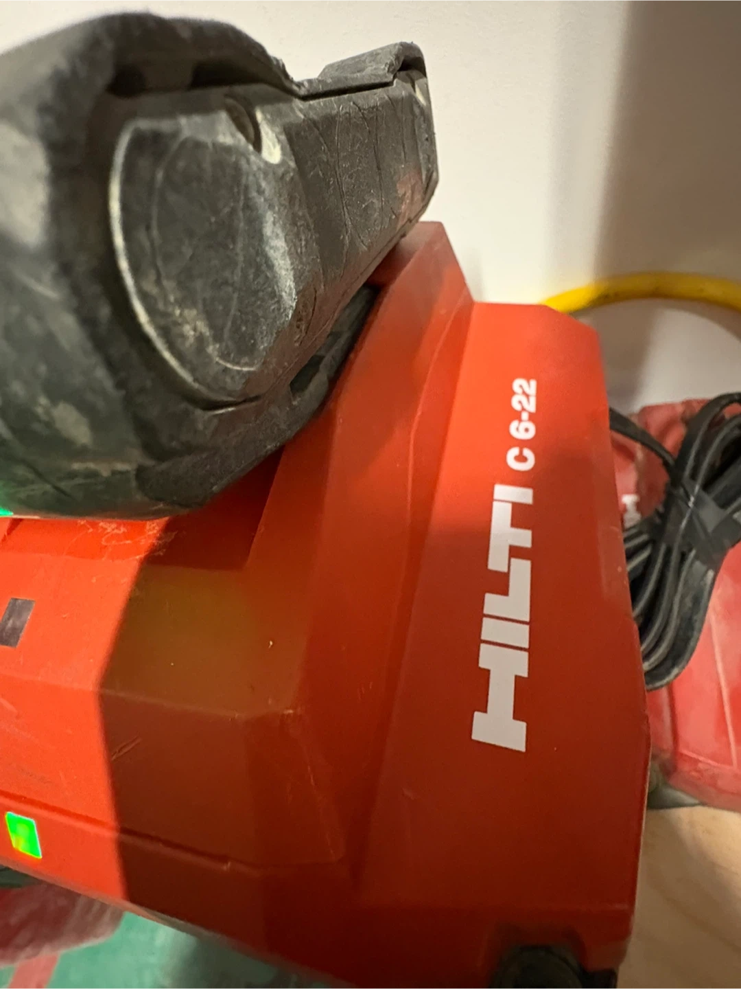 This is a Hilti C 6-22 battery charger. It's designed for Hilti 22V batteries. The charger has indicator lights showing battery status. Comes with power cord.