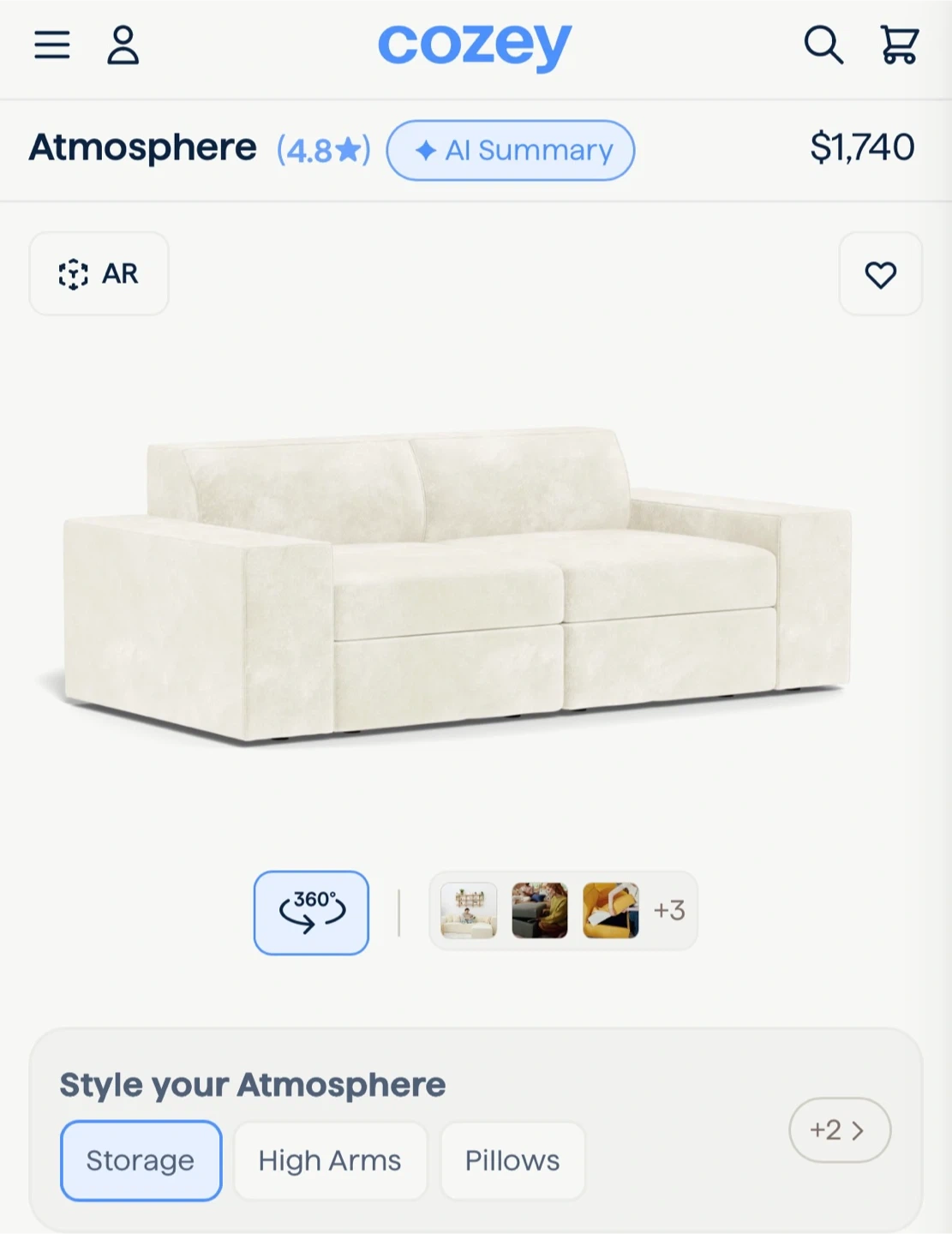 Selling a Brand new (Closed Box, Never Opened) Cozy Atmosphere sofa in the Frost Chenille fabric! This sofa features storage, high arms, and pillows to style your atmosphere.