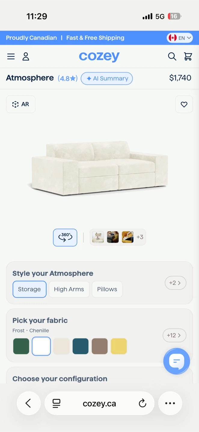 Selling a Brand new (Closed Box, Never Opened) Cozy Atmosphere sofa in the Frost Chenille fabric! This sofa features storage, high arms, and pillows to style your atmosphere.
