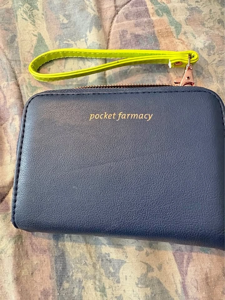 Handy Saje Pocket Farmacy kit. Has four essential oil roller bottles: Pep Halo, Immune, Eater's Digest, Stress Release. Comes in a navy blue faux leather pouch with a neon yellow wrist strap and rose gold zipper. Also includes info booklet. Great for natural wellness on the go. Pickup/ cash only. SE Vancouver. Victoria Drive & E 61 Ave.