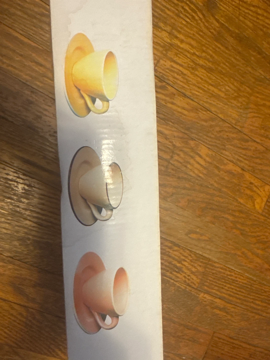 Includes four ceramic teacups and saucers in pastel colours: pink, yellow, light blue, and teal. Packaged in original box. Perfect for a lovely afternoon tea!