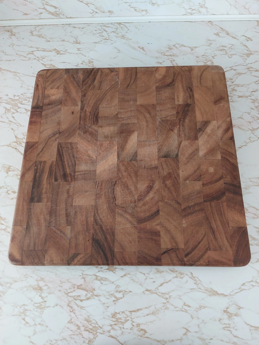Large wooden cutting board with a tiled end grain pattern. Good condition.
