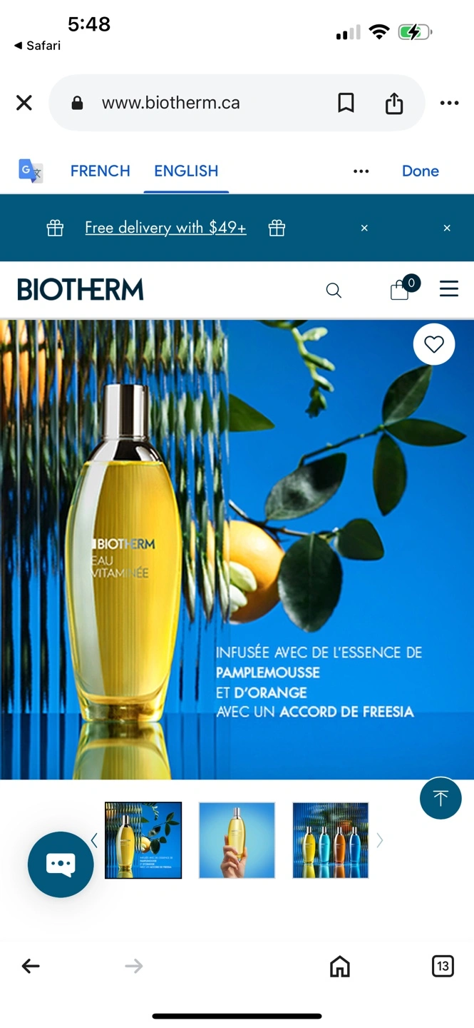 Biotherm Eau Vitaminée refreshing mist. 100ml spray. Infused with grapefruit and orange essence, and freesia accord. New, unopened box.