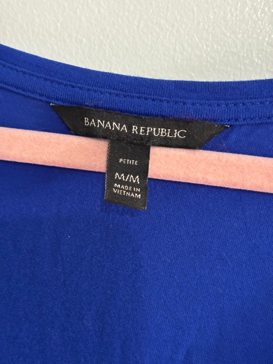 Selling a Banana Republic top in a vibrant blue colour. It's a size M/M and in great condition. Perfect for a casual day out or dressing up for an evening! The material is lightweight and comfortable, making it ideal for warmer weather. There are no rips, damages or stains.