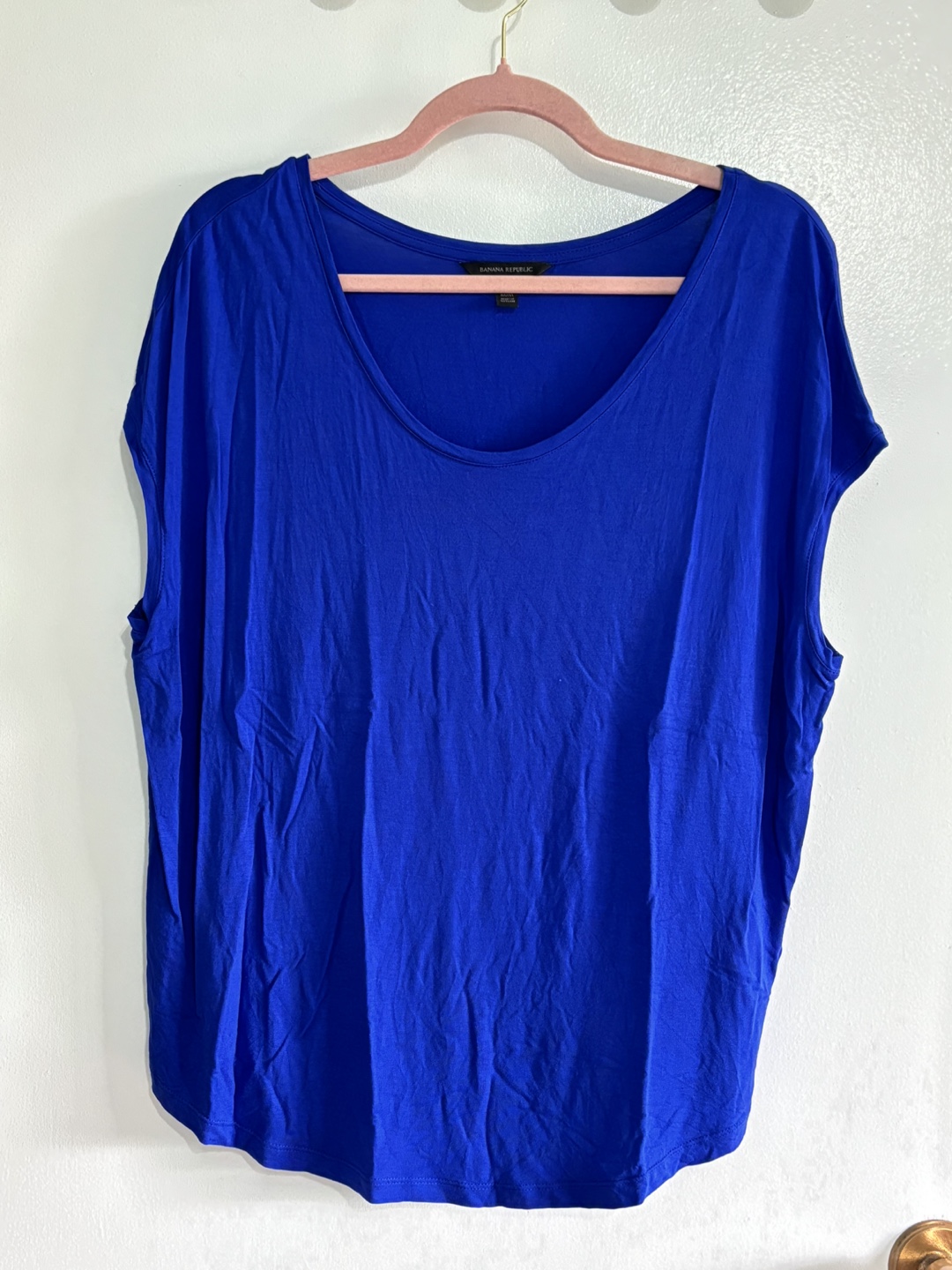 Selling a Banana Republic top in a vibrant blue colour. It's a size M/M and in great condition. Perfect for a casual day out or dressing up for an evening! The material is lightweight and comfortable, making it ideal for warmer weather. There are no rips, damages or stains.
