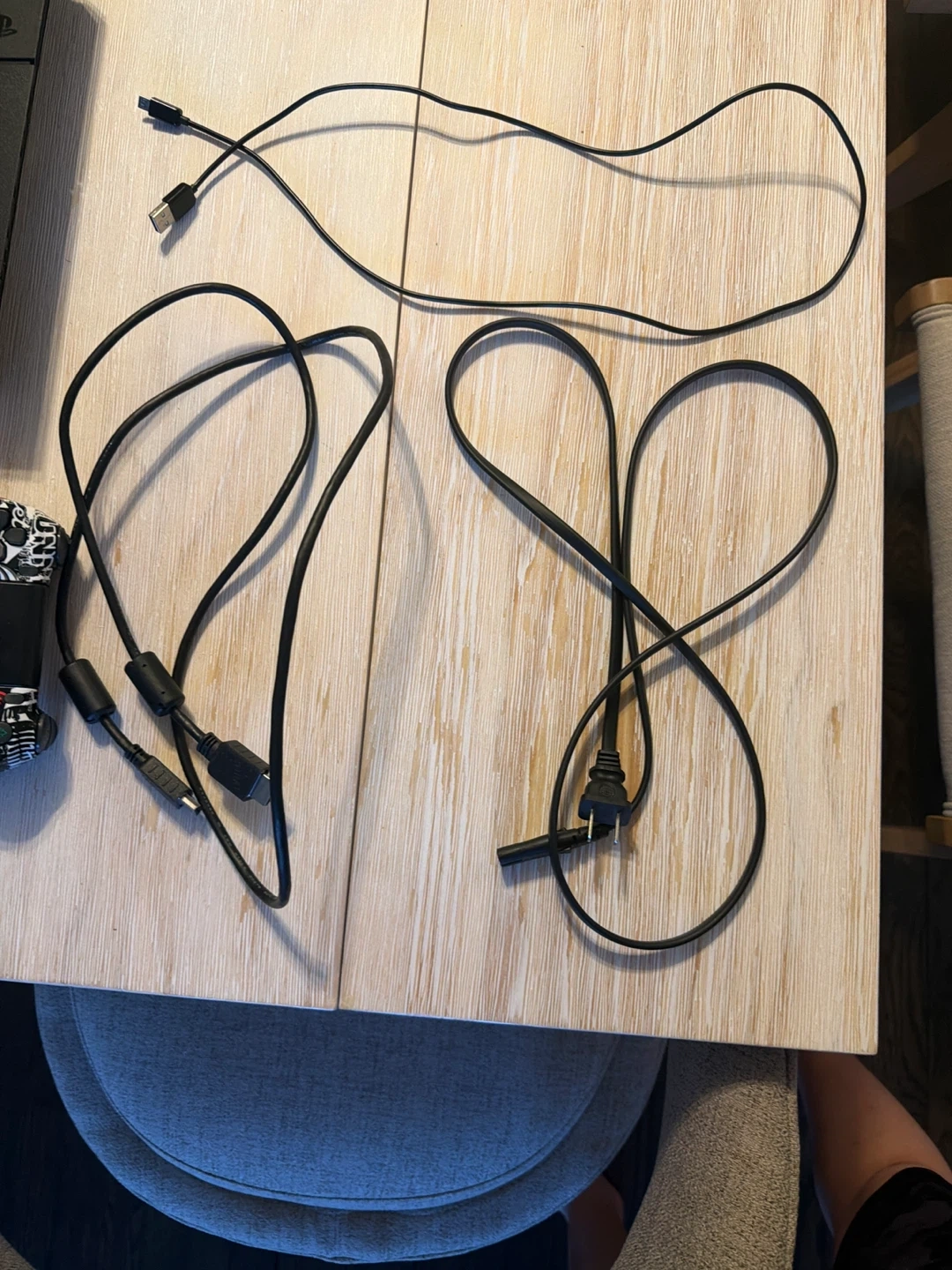 This is a black Sony PlayStation 4 console. It comes with three controllers and necessary cables. One controller has a unique graphic design, while the other two are standard black.