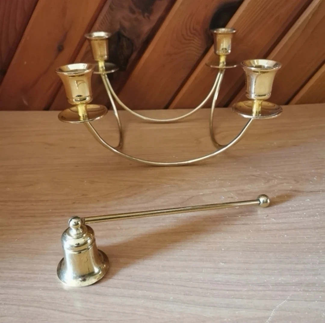 Brass Candelabra With Brass Candle Snuffer Set