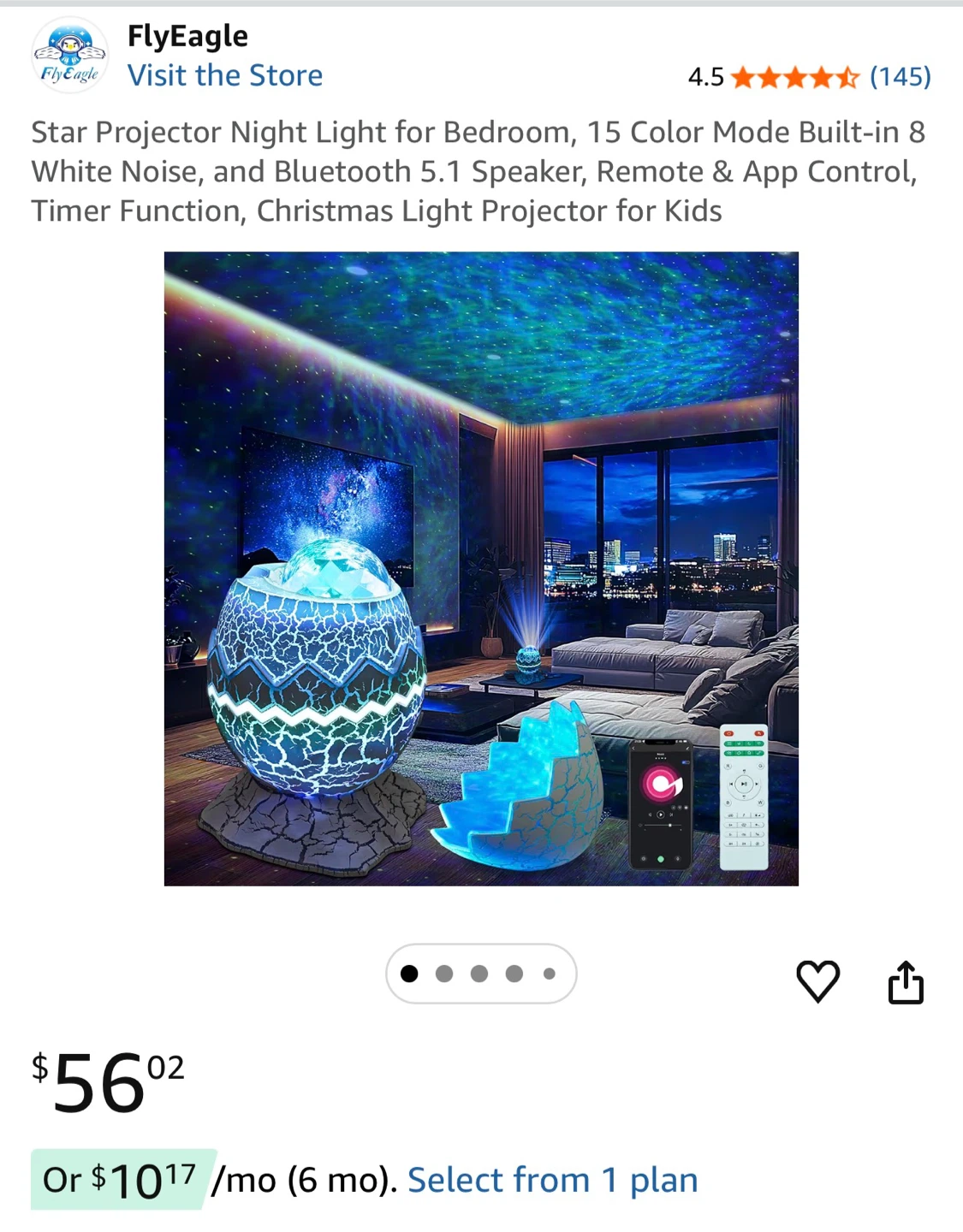 This star projector night light creates a beautiful atmosphere with 15 color modes and built-in white noise. It also functions as a Bluetooth 5.1 speaker and includes a remote control with timer. It's a fun addition to any bedroom!