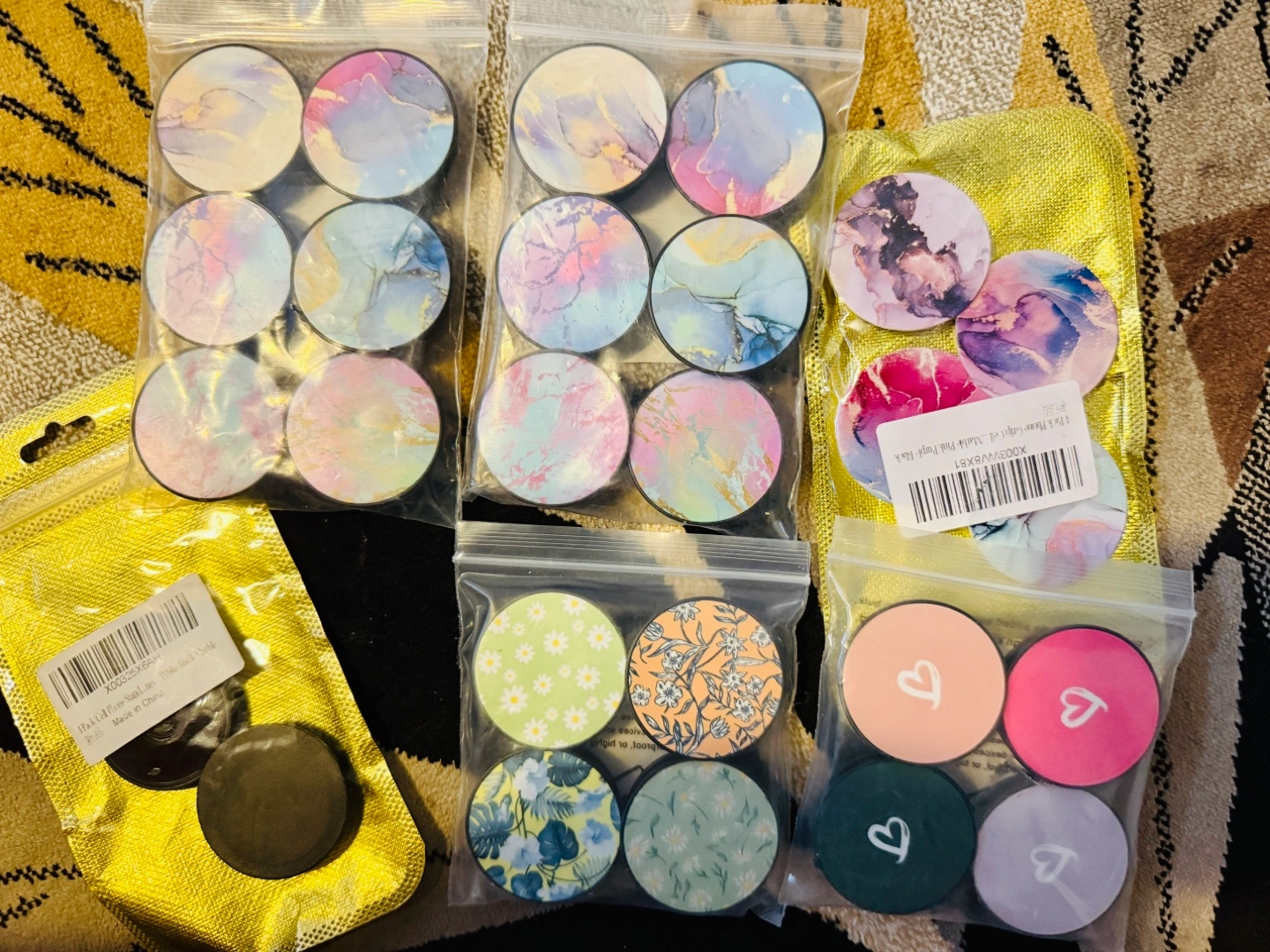 I'm selling these brand new 4-pack phone grips! There are a variety of designs including marble, floral and hearts. They're still in their original packaging.
