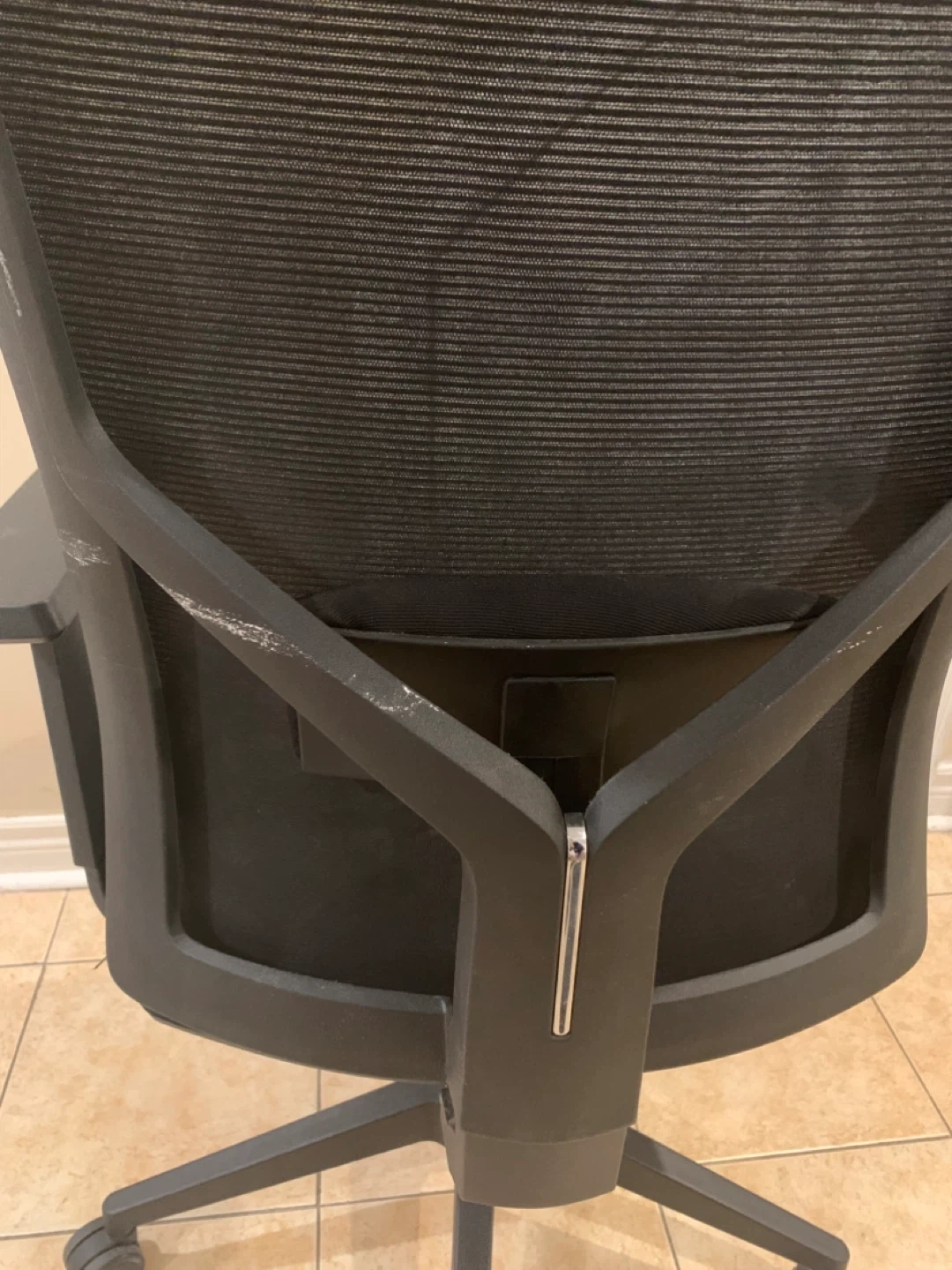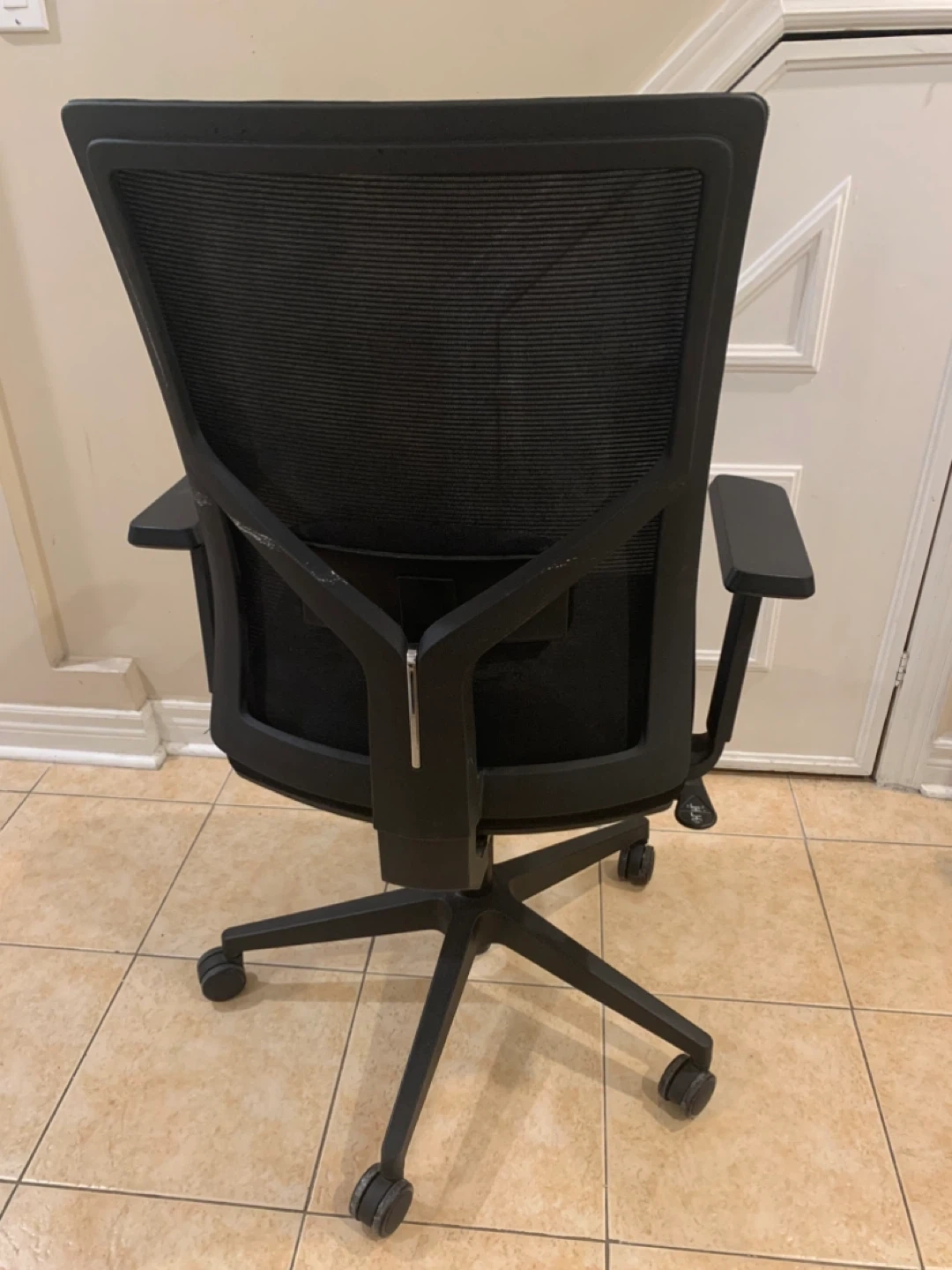 Selling a black office chair. It's in gently used condition with some wear and scuffs. Please see photos for details.