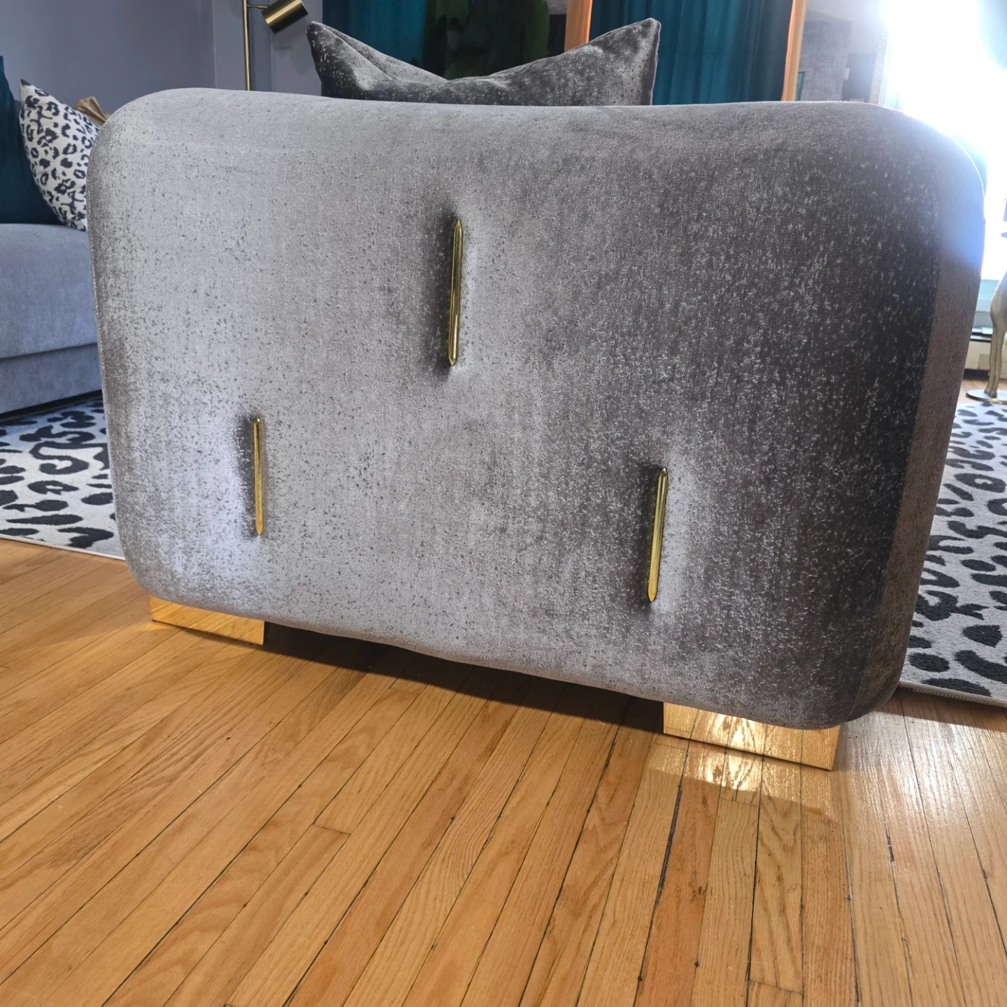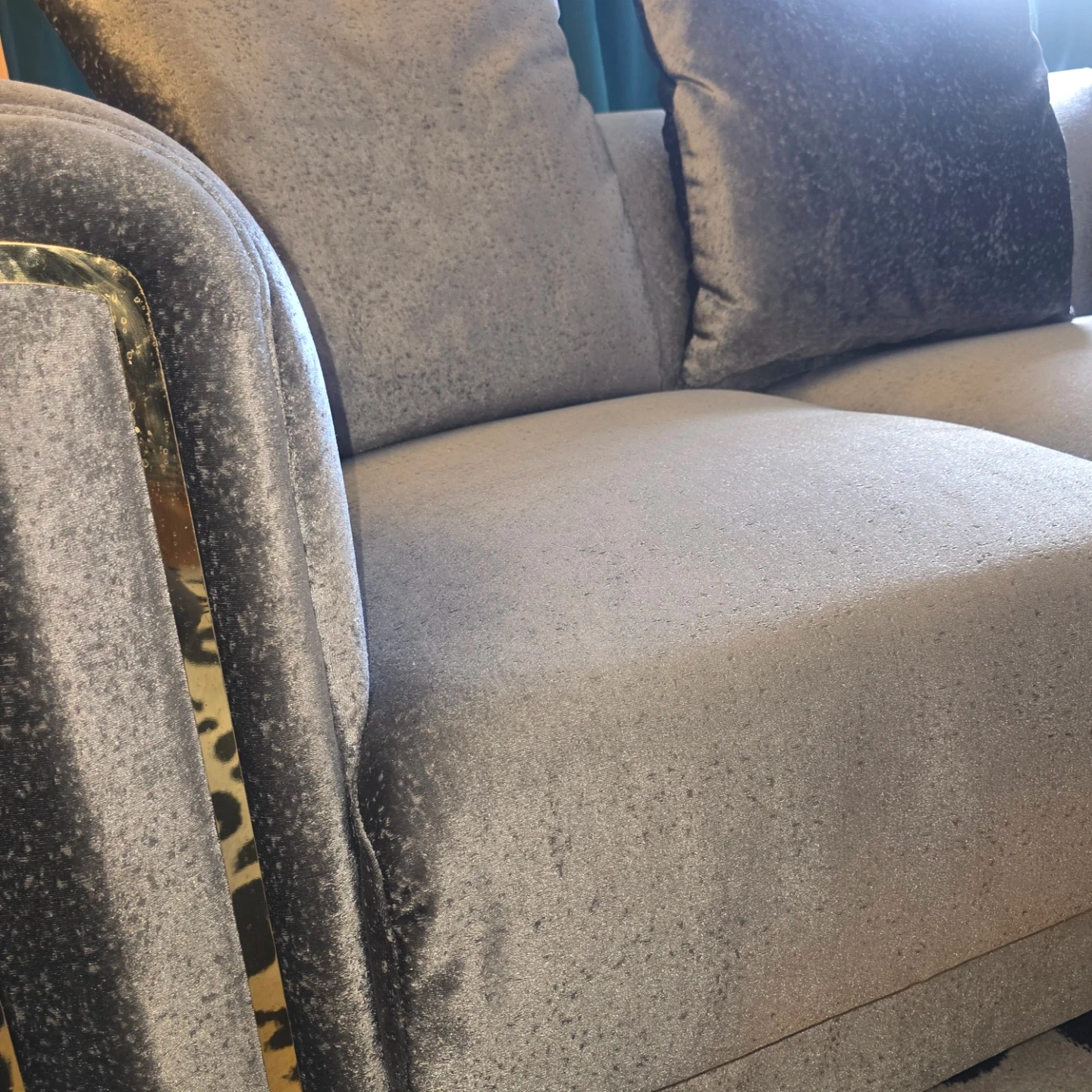 Grey Velvet Armchair with Gold Accents