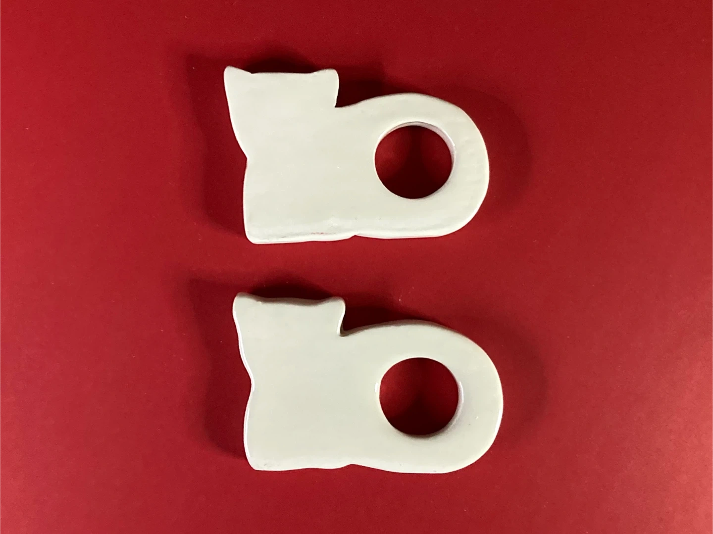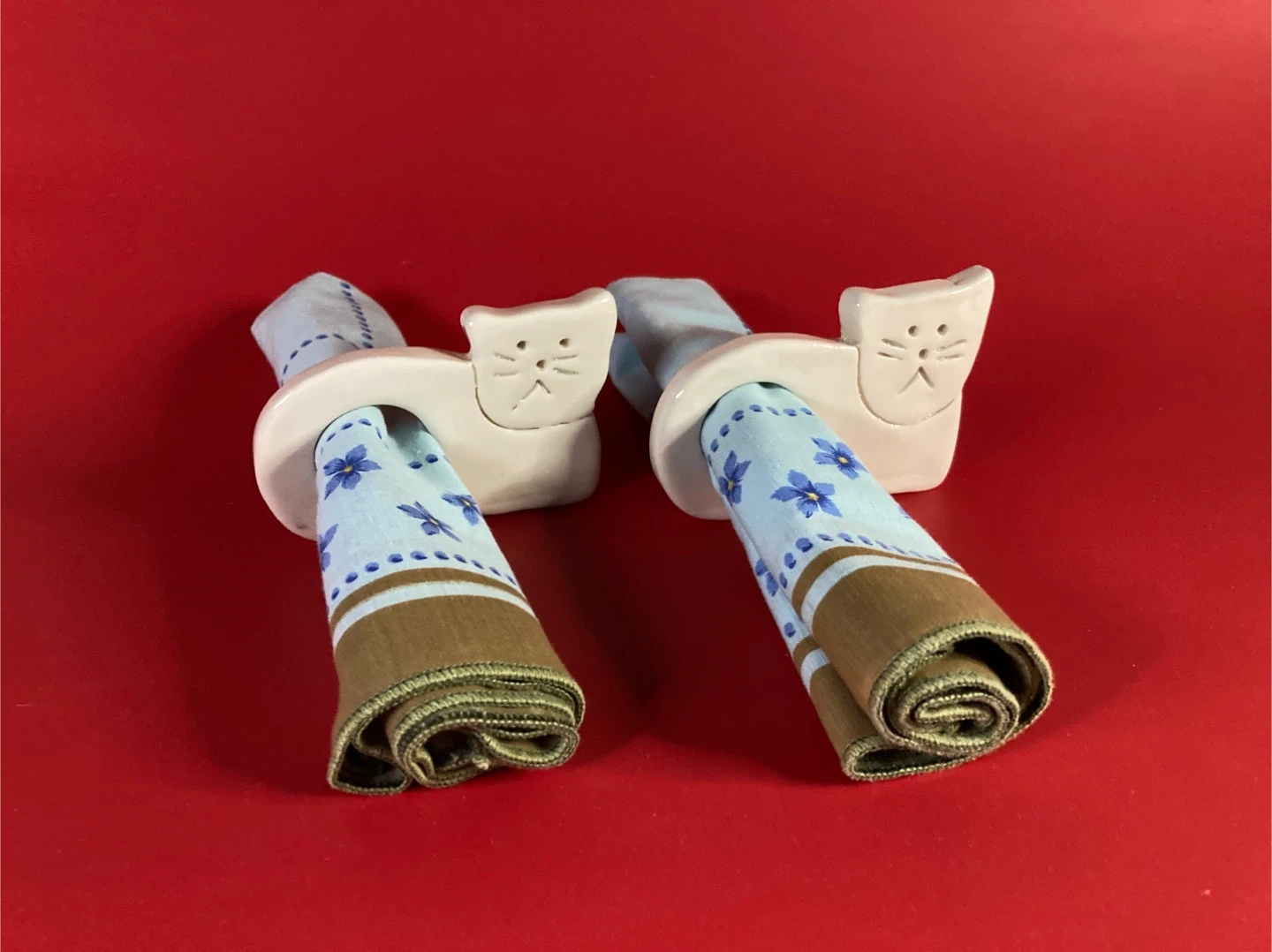 Set of 2 Cream Handmade Ceramic Cat Napkin Rings