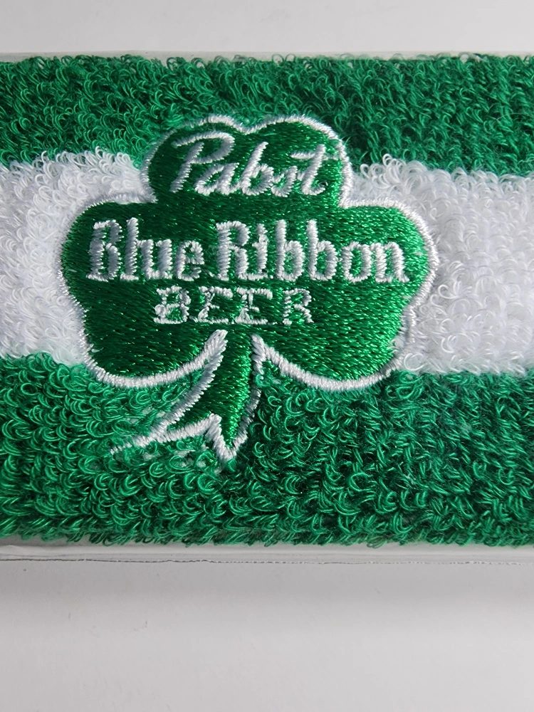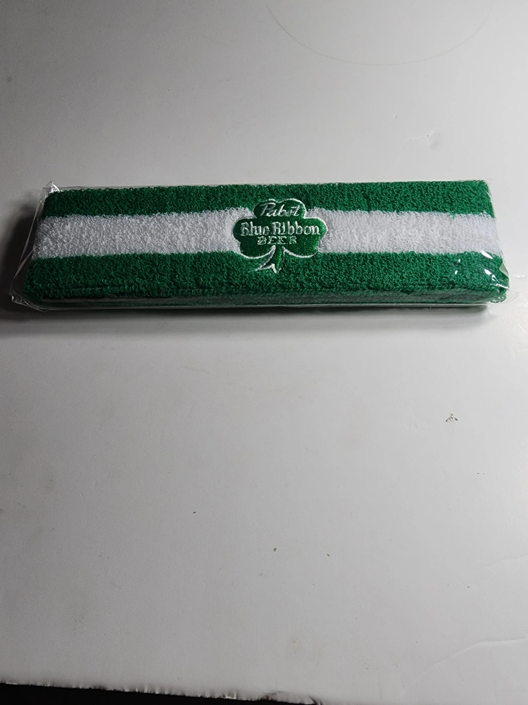 Brand new Pabst Blue Ribbon beer headband, still in original packaging! It's green and white, perfect for keeping your hair out of your face during workouts or just showing off your love for PBR