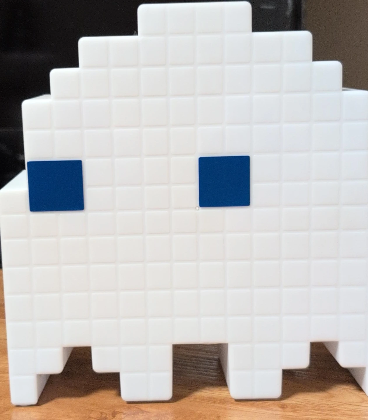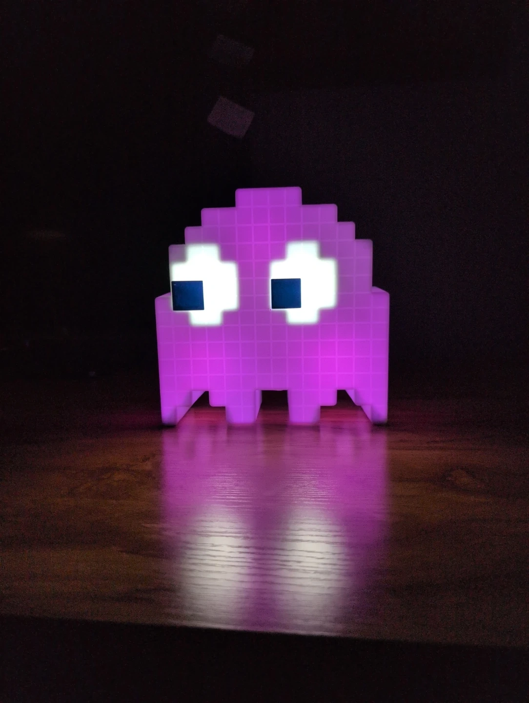 12Add some retro gaming fun to your space with this Pac-Man Ghost Light! It's a colour-changing light shaped like a ghost from the classic Pac-Man game. It's in good condition and ready to brighten up your room with a nostalgic glow