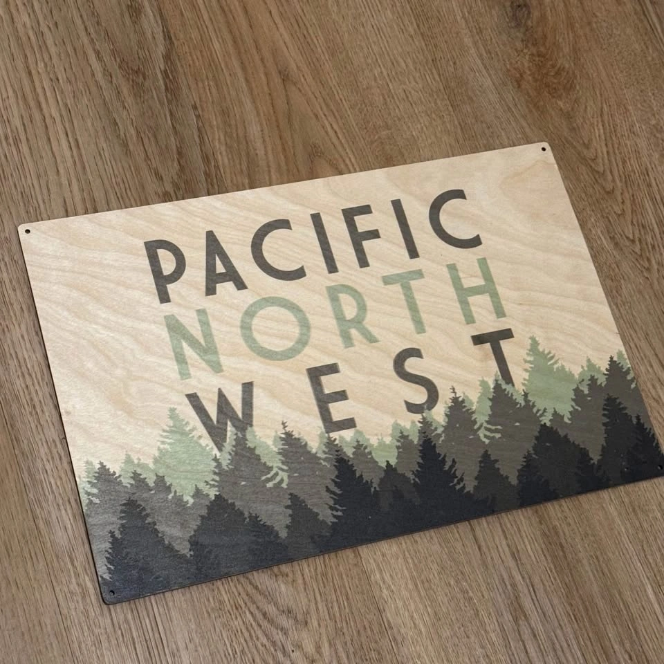 15Beautiful Pacific Northwest wooden wall art, brand new and never used. Purchased in Portland, this piece features a clean, modern forest design printed on smooth natural wood. ✨ Details: • Material: wood • Condition: New / never used • Pre-drilled holes for easy hanging • Dimensions: W: 15” x H: 10” 📍 Pickup near Phibbs Exchange, North Vancouver