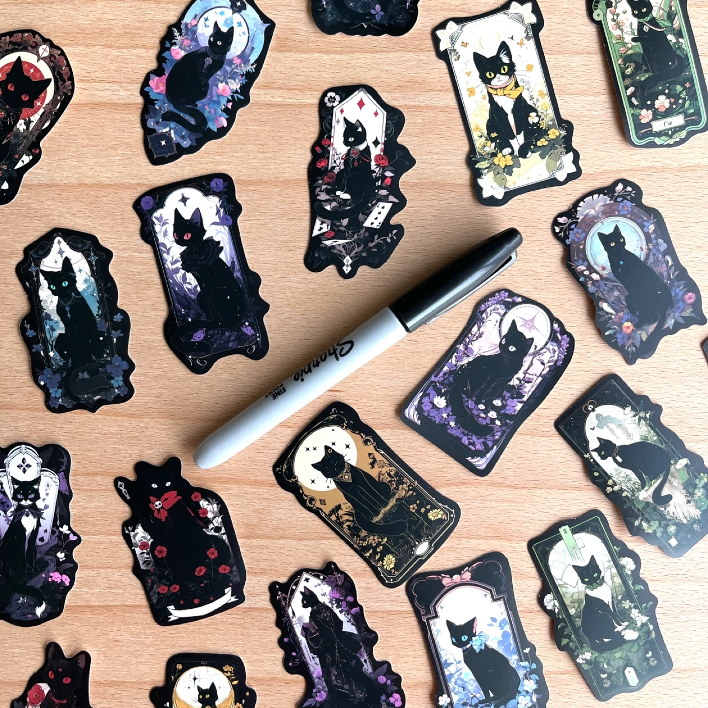 Pack of 50 Cat Goth Art Stickers 🥕