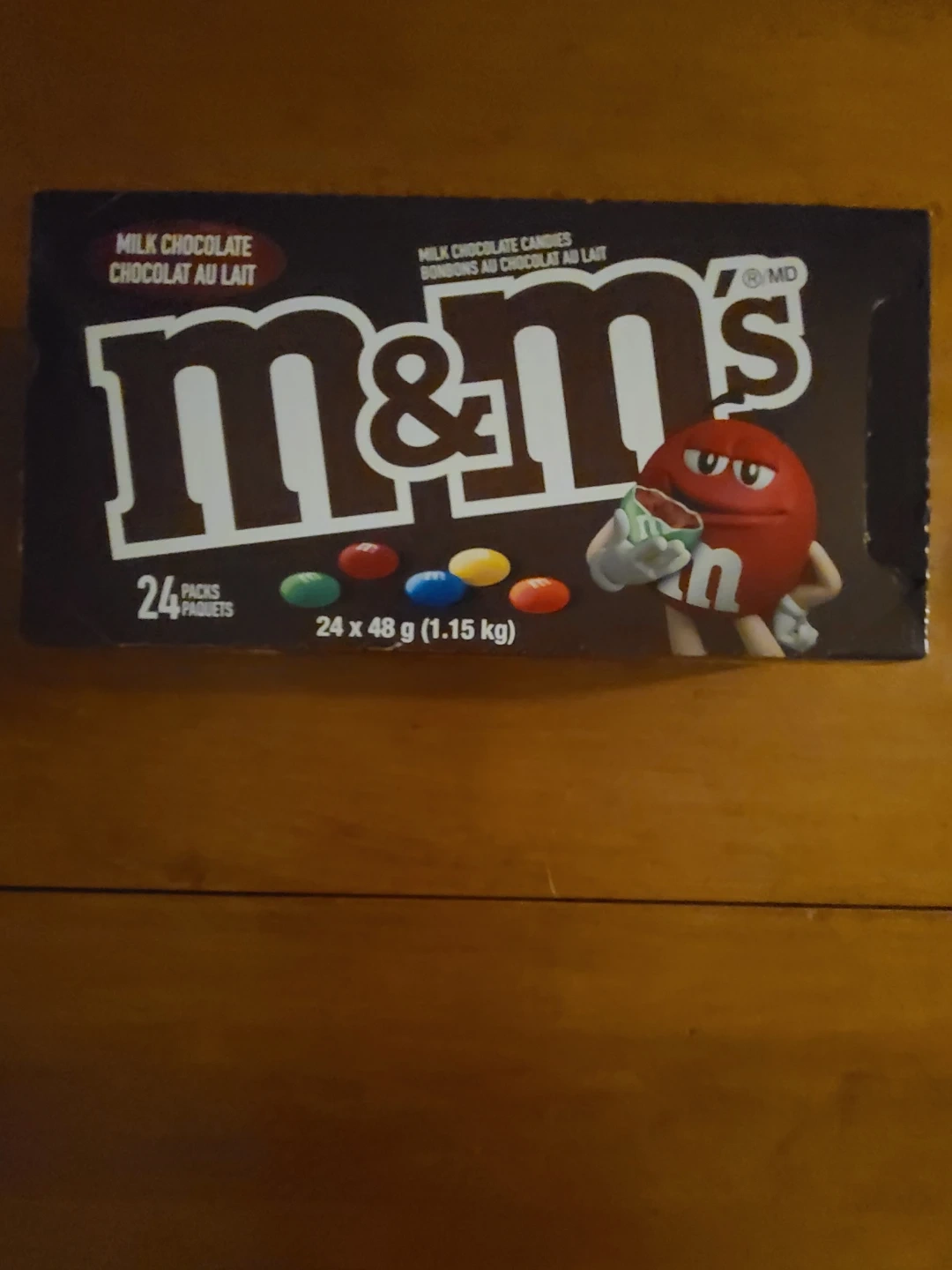 This is a box of M&M's milk chocolate candies. It contains 24 individual packs, with each pack weighing 48g for a total of 1.15 kg. The best before date is April 2026. These are great for parties or sharing!
