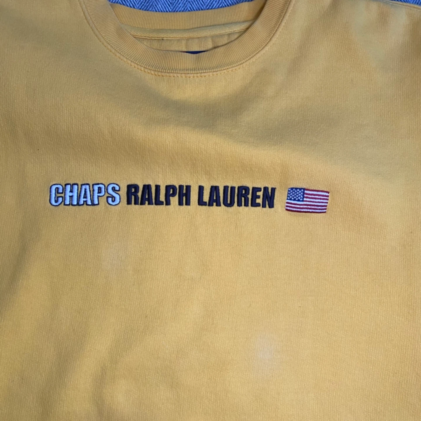 Vintage Yellow Chaps Ralph Lauren crewneck sweatshirt. Size XL. Made of 80% cotton and 20% polyester.