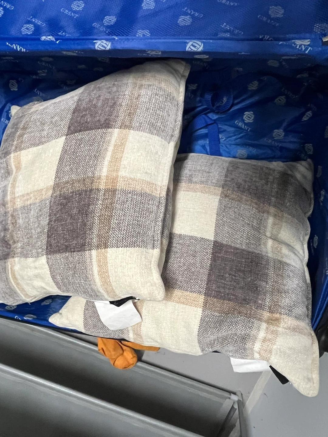 Two Millihome throw pillows with a plaid pattern. Shell and filling are 100% polyester fiber. Adds a cozy touch to any room!