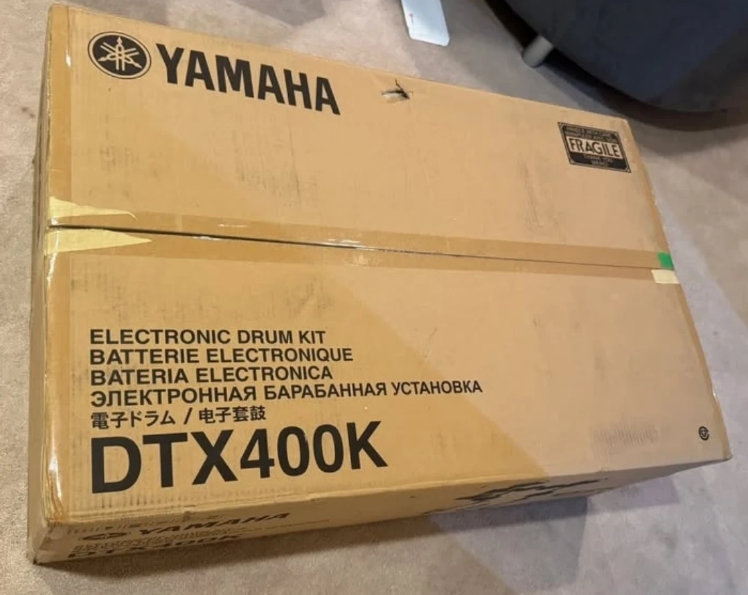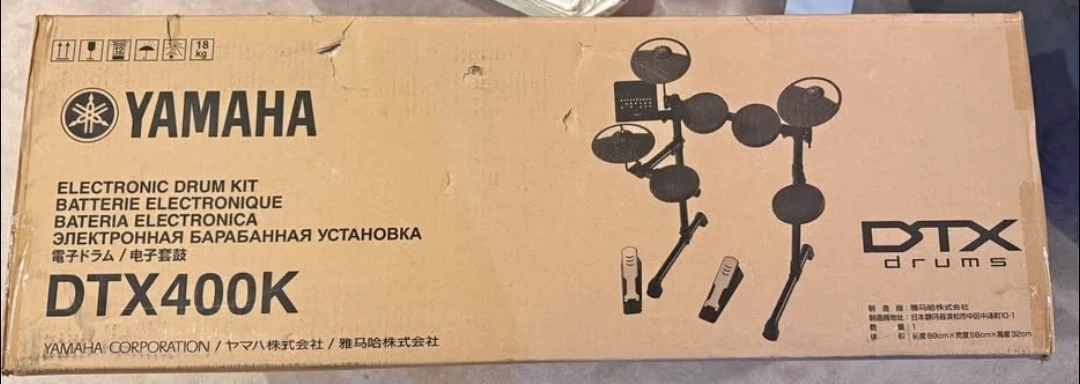 Still in original box. DTX400 module with 169 sounds, 10 preset kits, a steel rack, 7.5" snare/tom pads, a 10" hi-hat pad with controller, 10" crash/ride cymbals, a silent KU100 kick unit, and a real bass drum pedal. Includes training functions with voice guidance. Feel free to message if you have any questions!