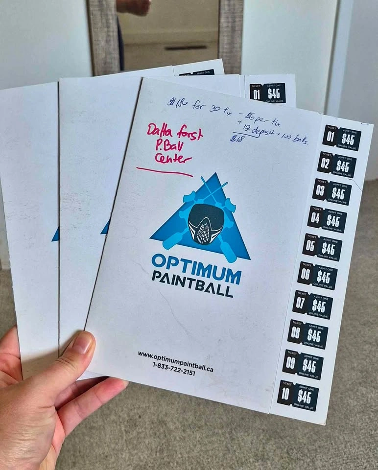 30 tickets for Optimum paintball. 10 expire in 2026, the rest have no time limit.