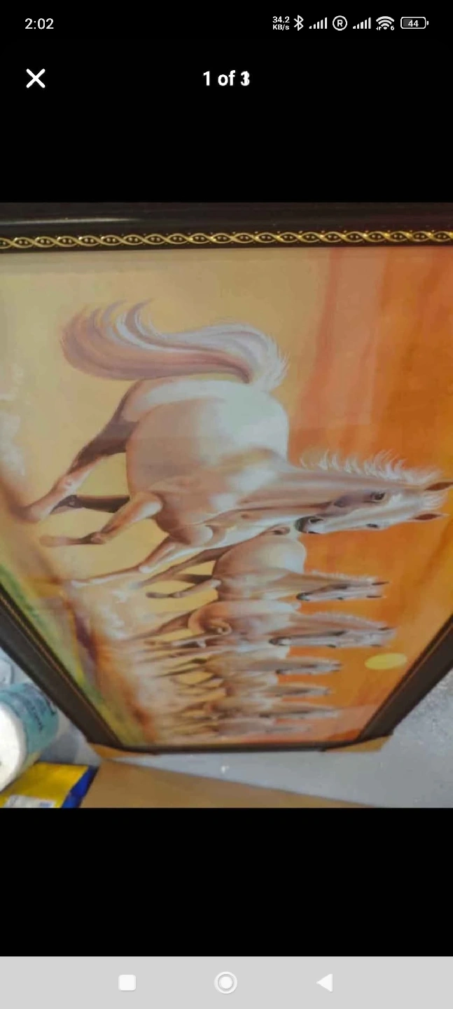 118A framed print featuring a Pegasus. The frame has a decorative gold-coloured border. It would look great on any wall!