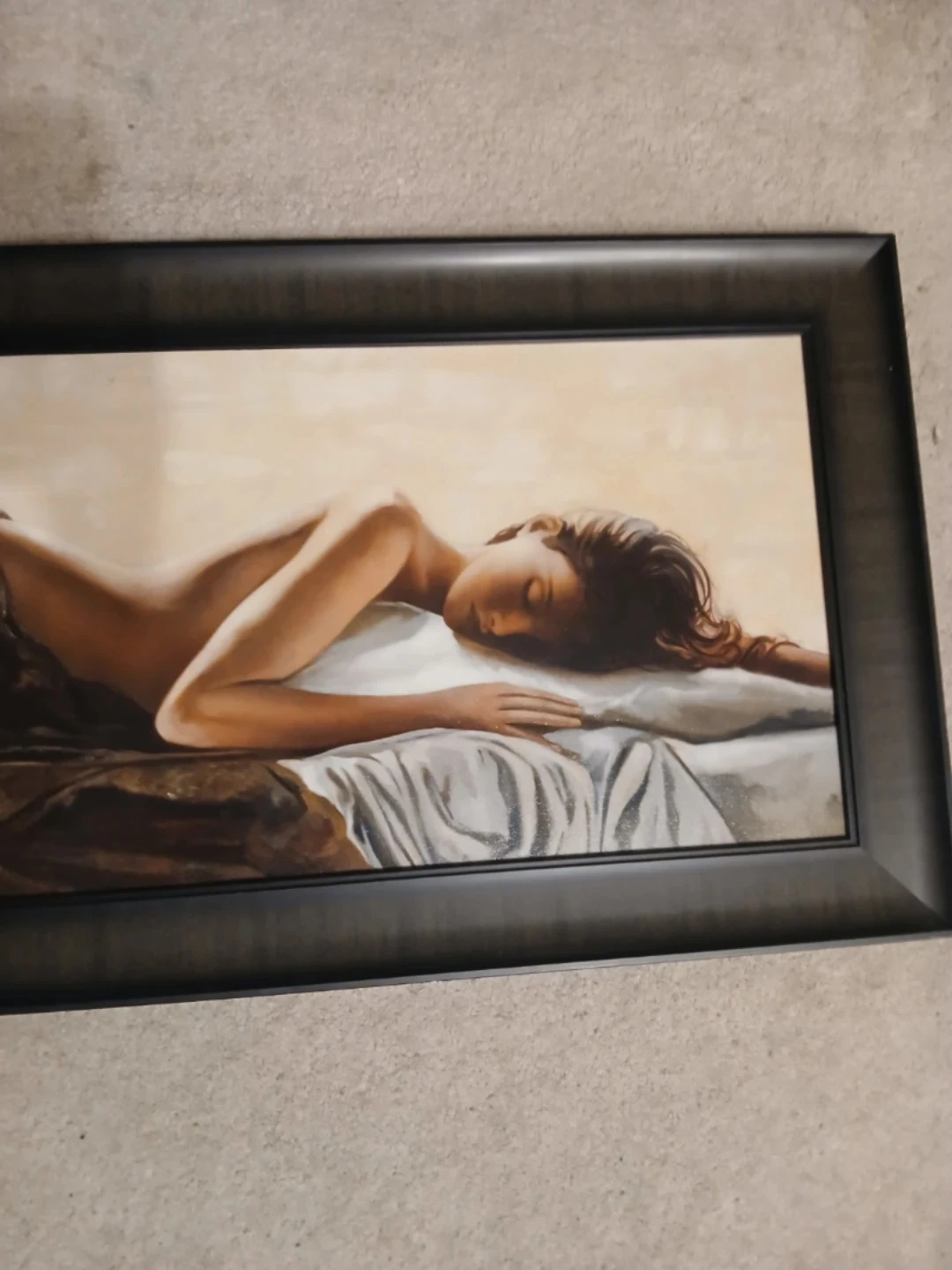 834105 cm x 43.5 cm Large (long) painting of woman laying relaxing / sleeping. Very sensual, modern, pretty