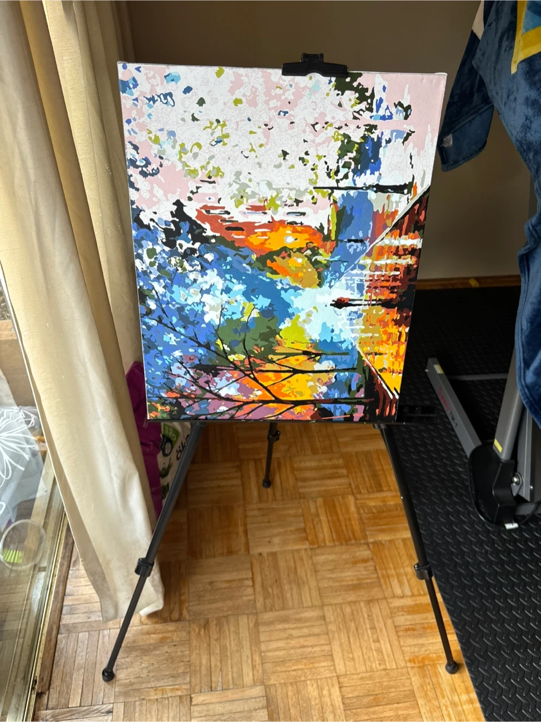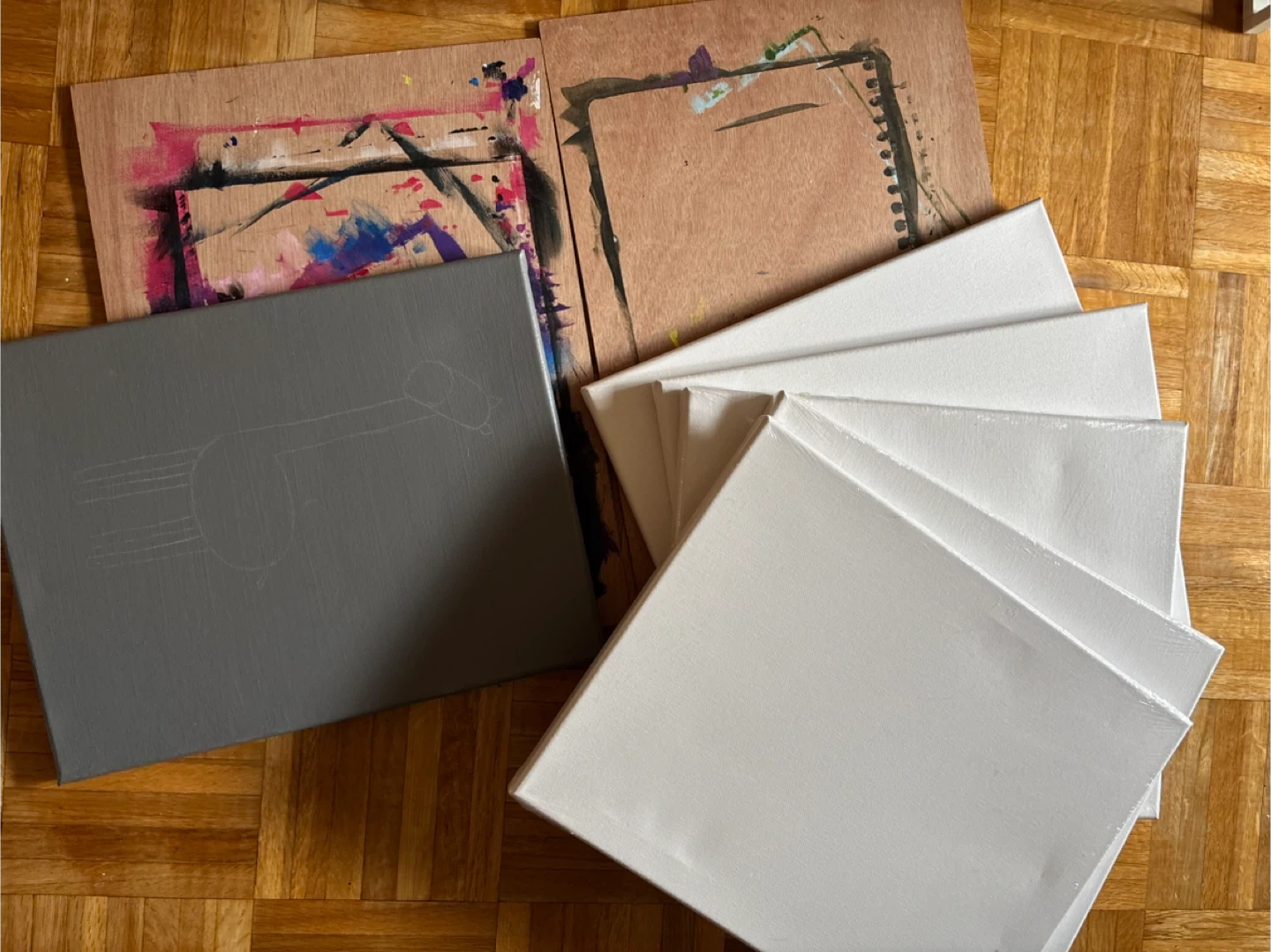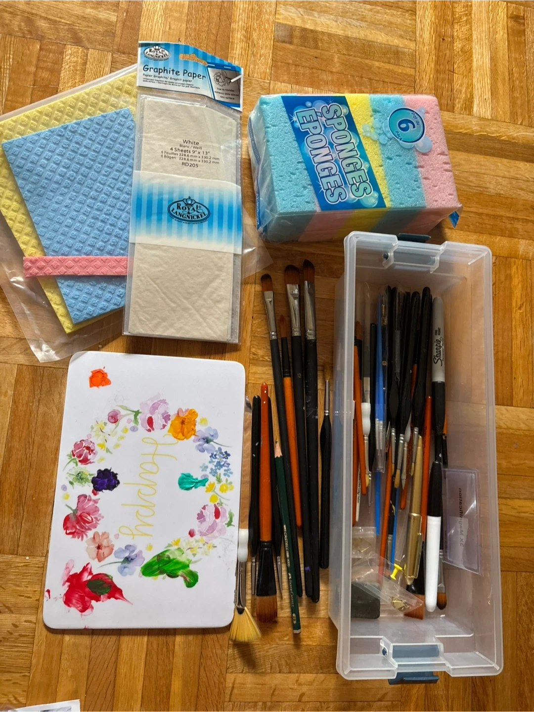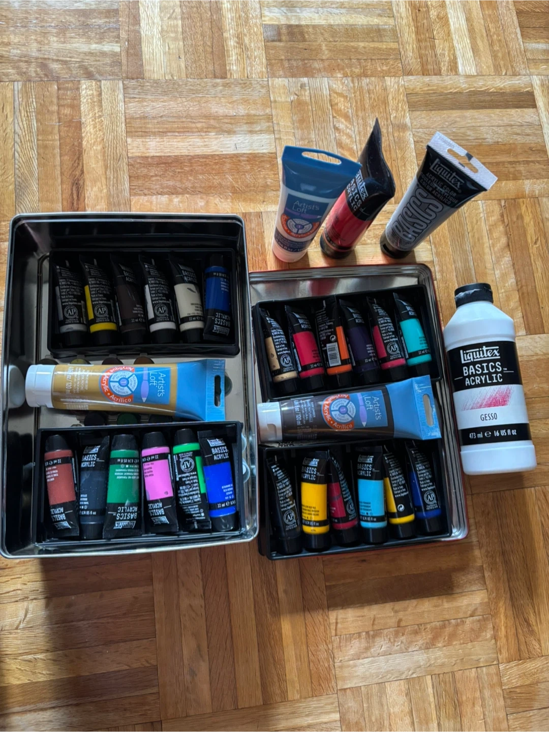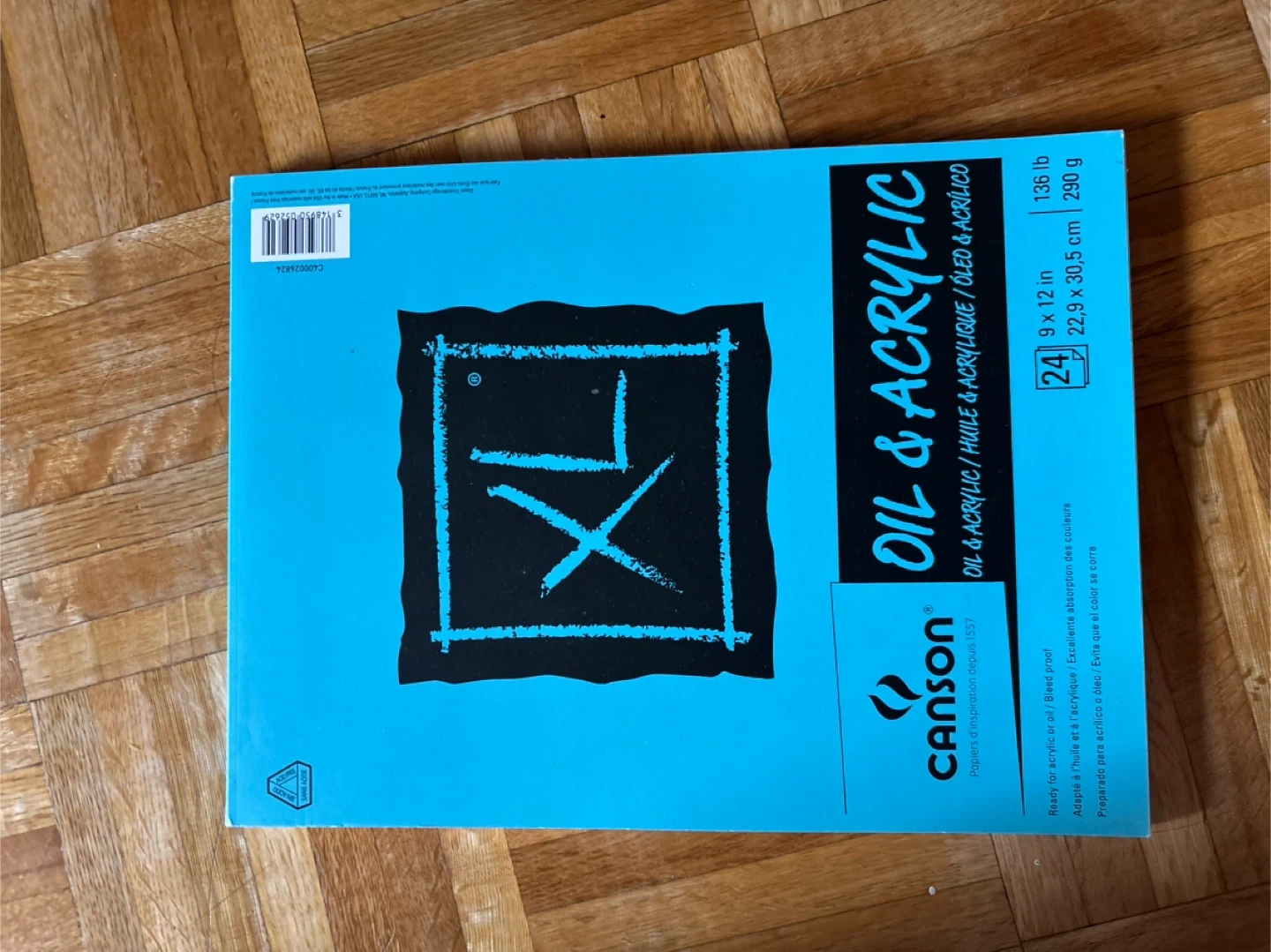 Selling a collection of artist's supplies including acrylic paints, canvases, brushes, an easel, and other accessories. Perfect for beginners or experienced artists looking to expand their collection! Includes Liquitex Basics acrylic paint and Canson XL Oil & Acrylic paper pad.