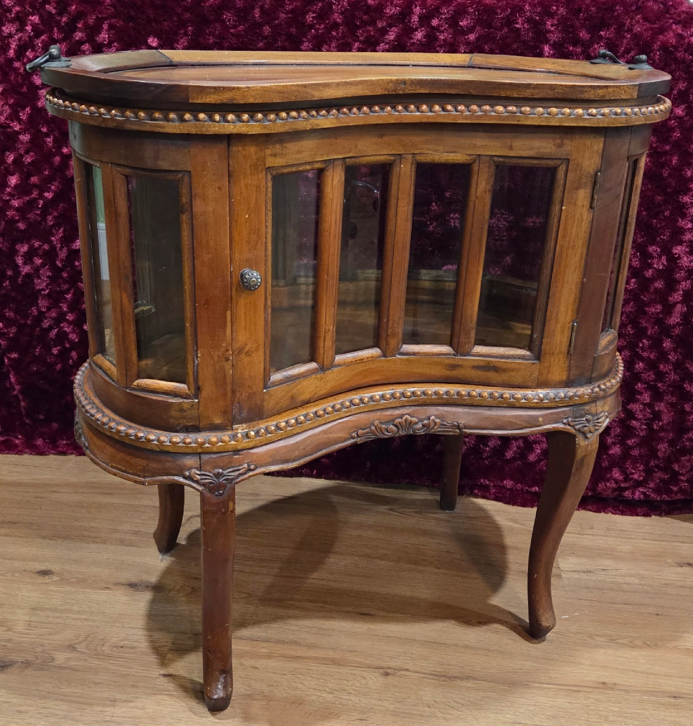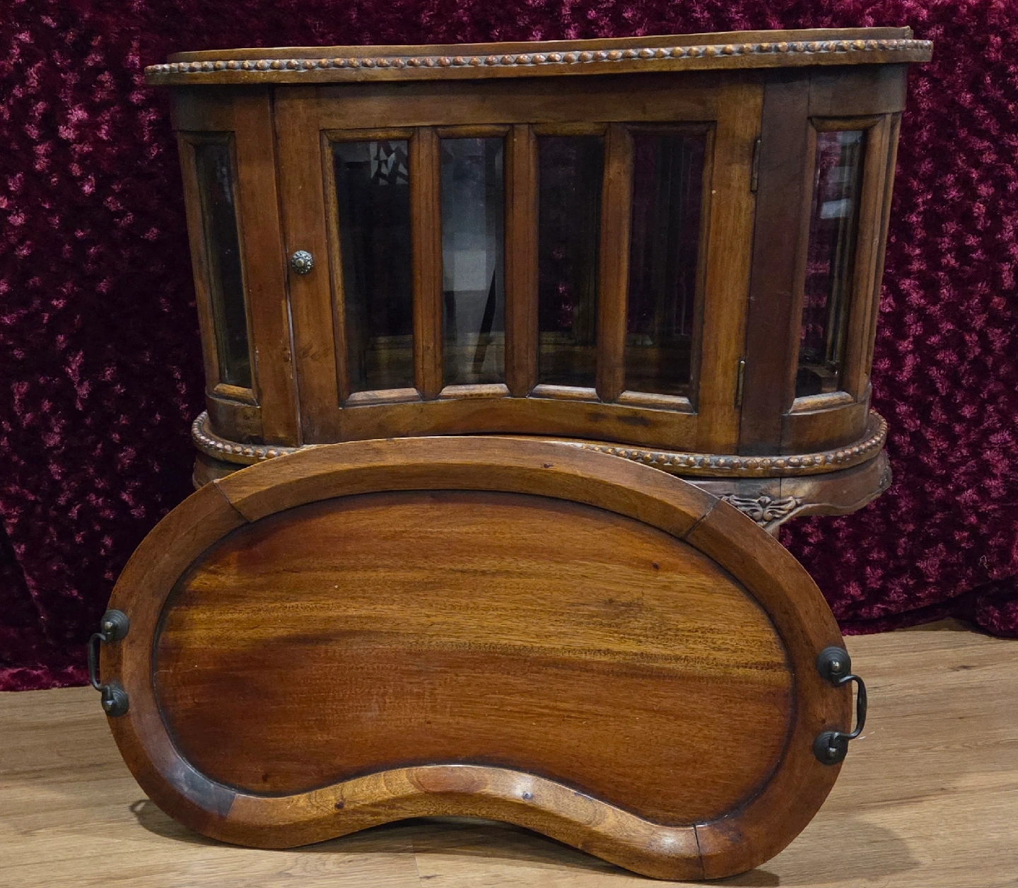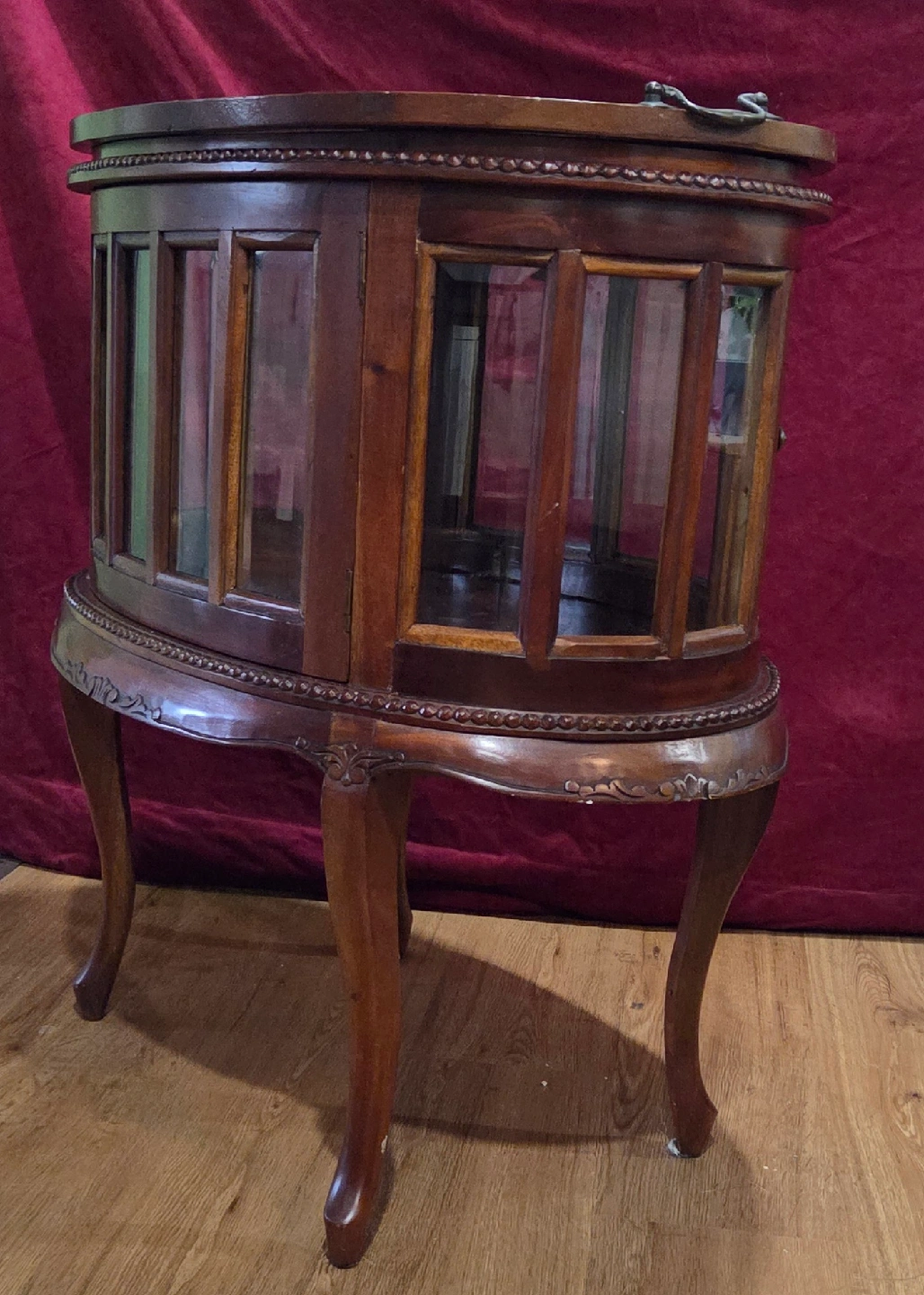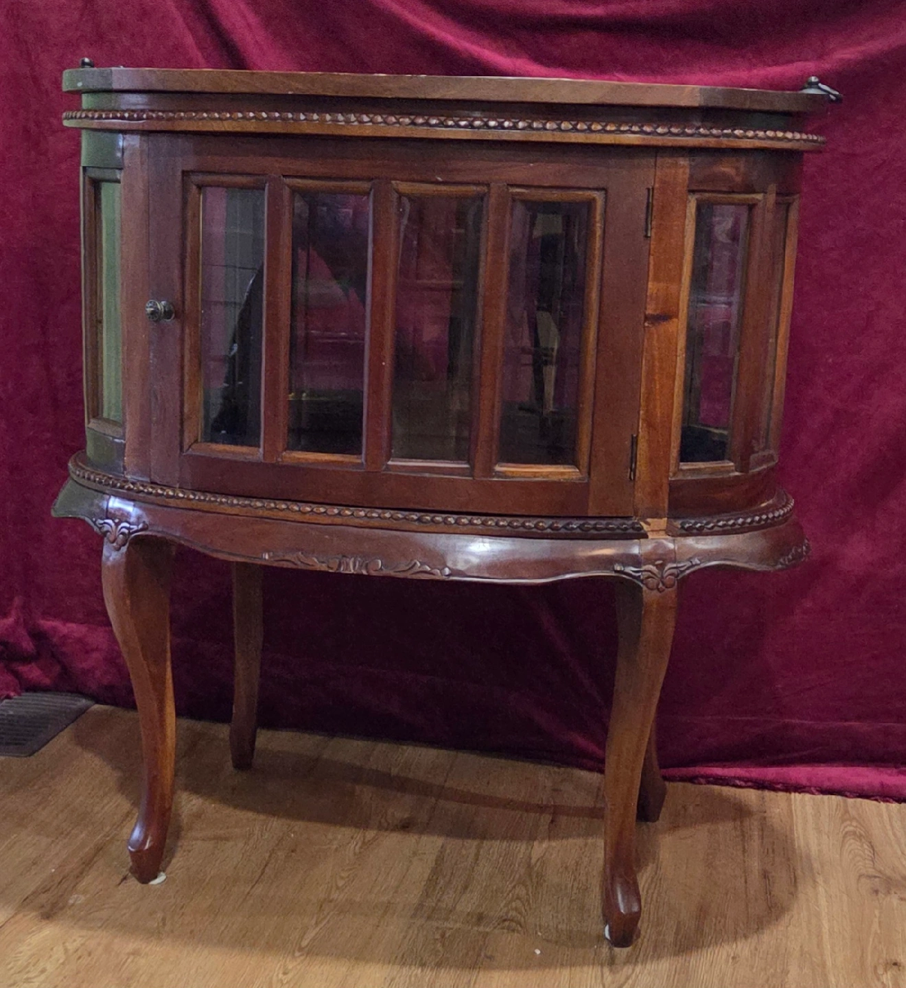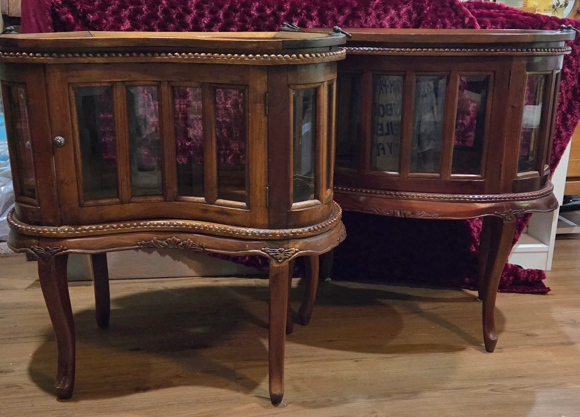 Selling 2 charming vintage/antique display/liquor cabinets! Features: real wood frame with beveled glass panels, a removable tray on top, hinged doors ( one has 2 doors), many intricate, carved embellishments add to their beauty. Price is for the pair. call or msg Jay 519 790 9094