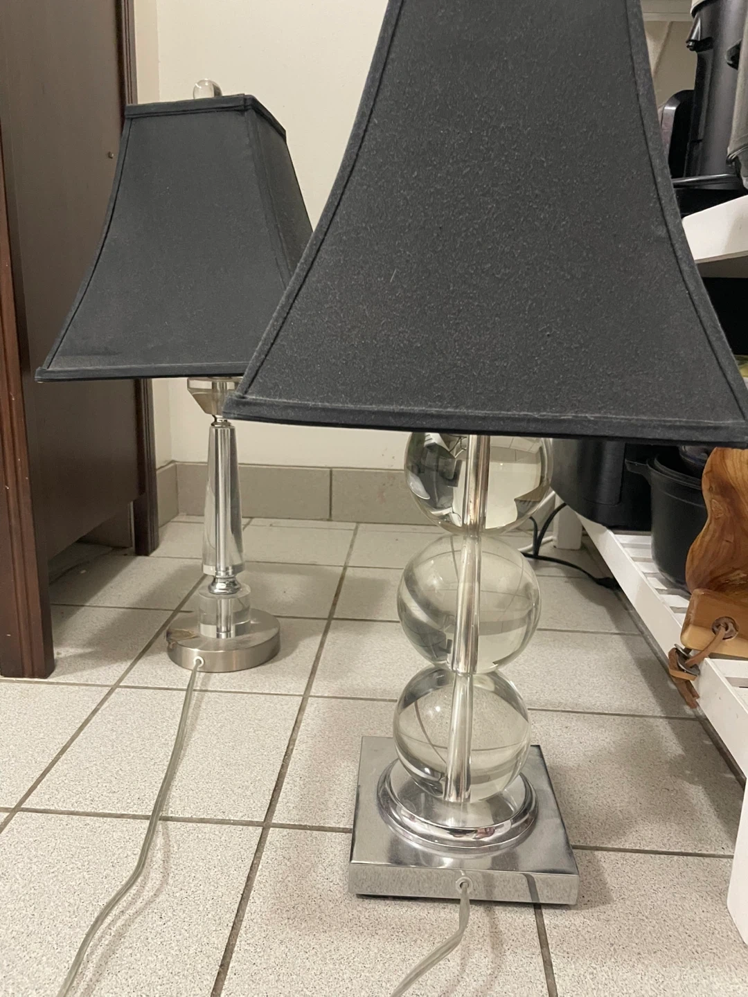21$12 each or both for $20 Selling a pair of lamps with black shades and silver bases! They add a touch of elegance to any room. Perfect for bedside tables or living room accents