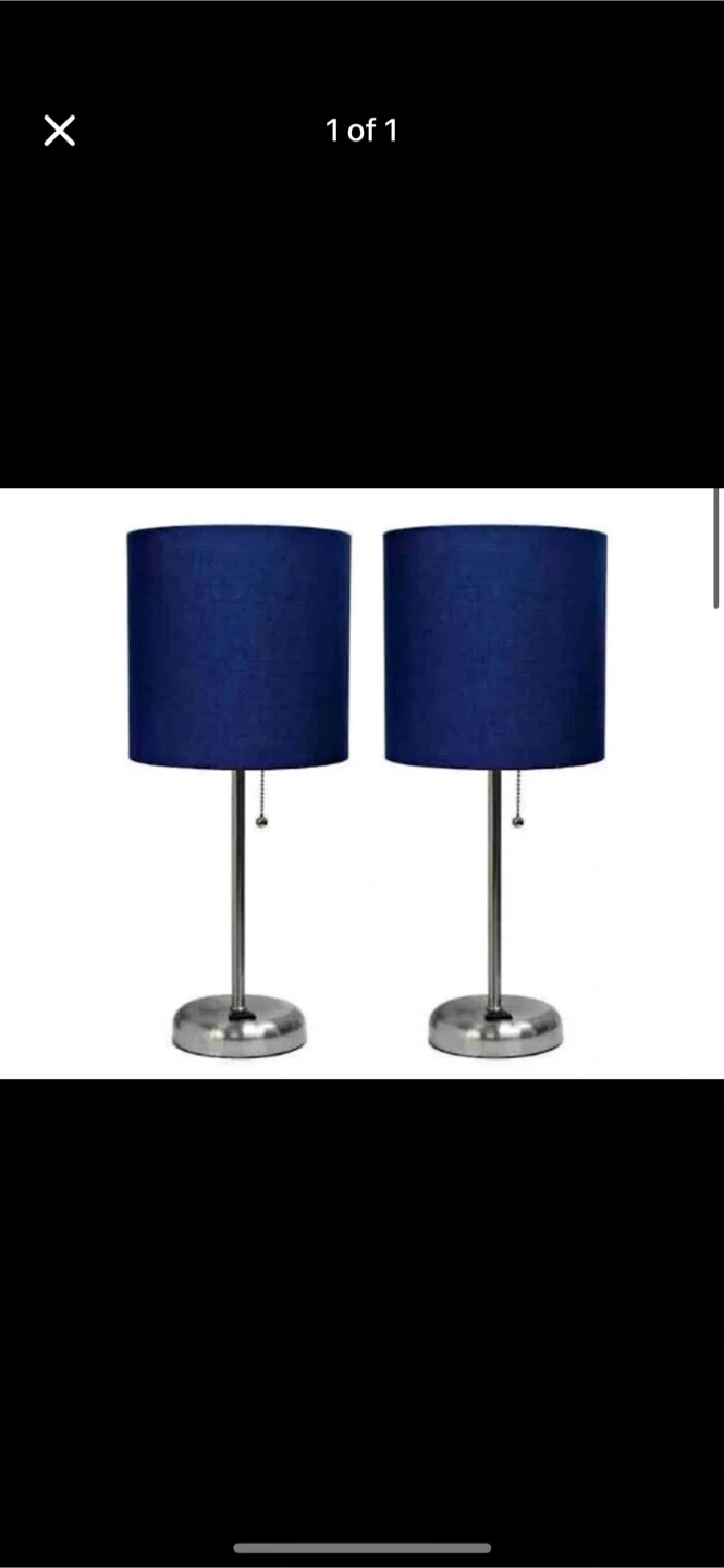 92Set of two table lamps. Dark blue shades. Metal bases. Pull chain. 14" Navy Blue Table Desk Lamp Set Of 2 - - Item Condition: New Package Dimensions: 38x33x18cm