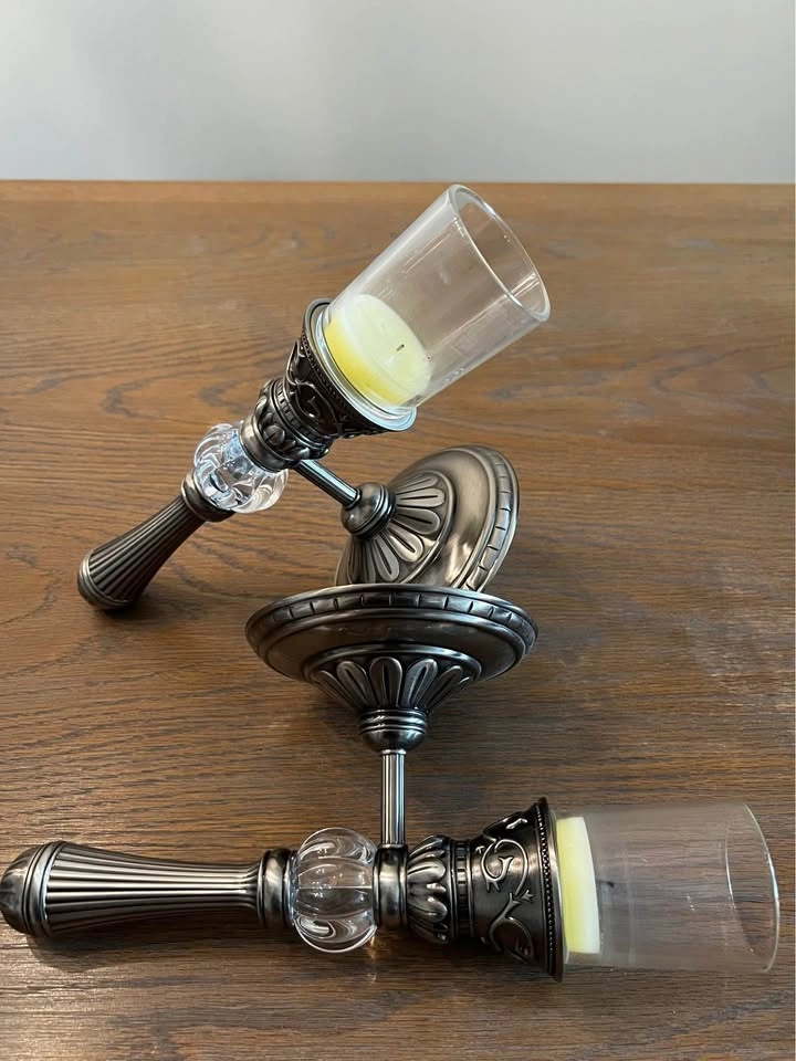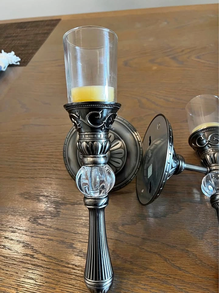 Beautiful Pair of Partylite Candle Sconces with shades Height: 12.5”