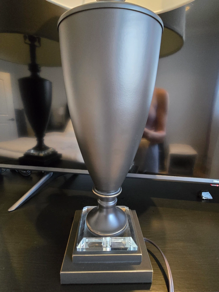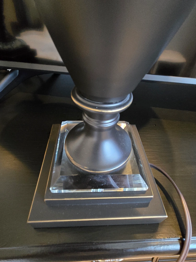 Show allBrown Wood Desk with Black Glass Top and Keyboard Tray