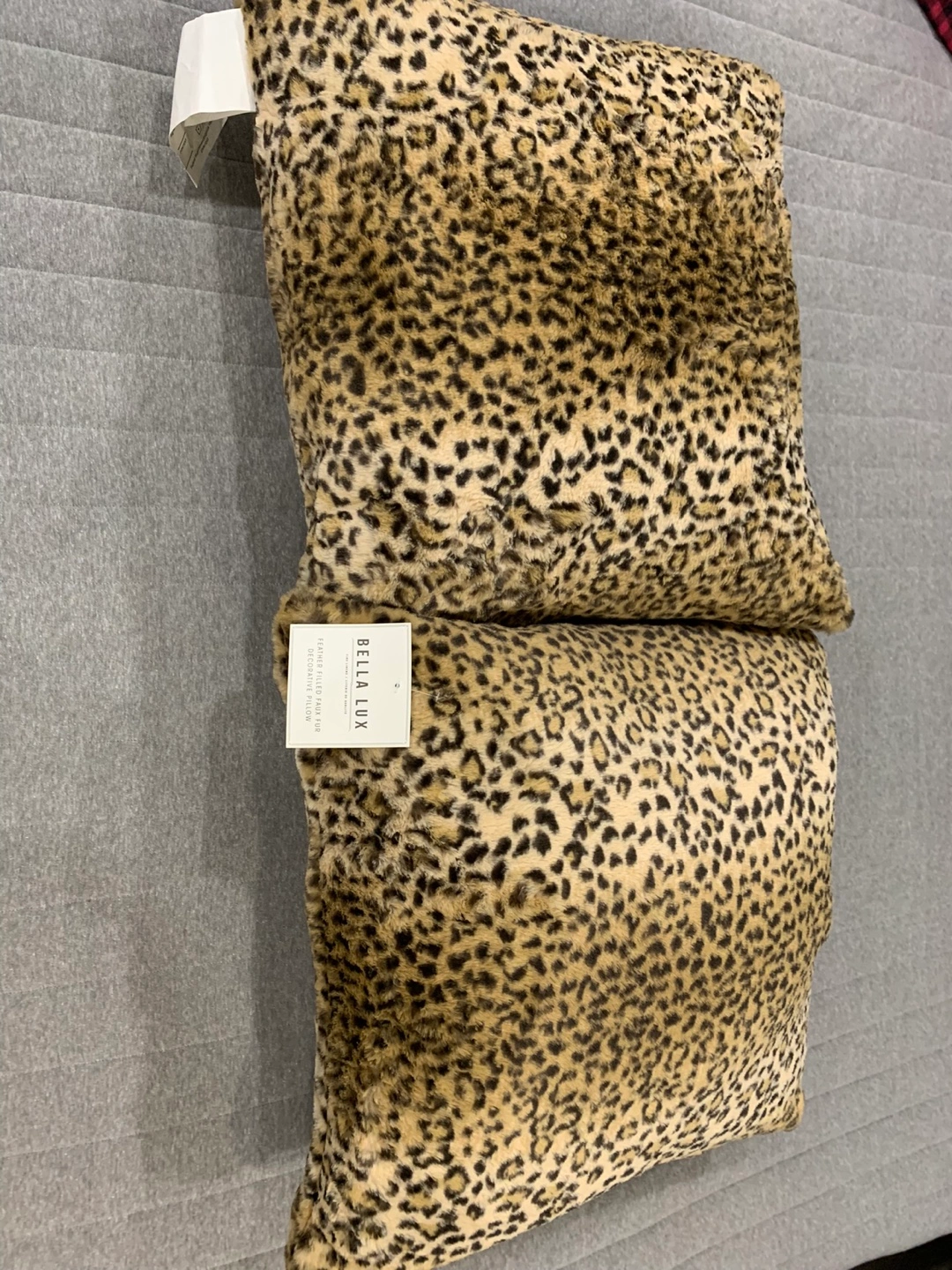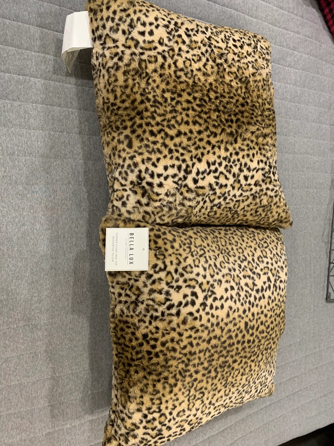 Two soft and luxurious faux fur throw pillows. Leopard print design. Perfect for adding a touch of style to your living room or bedroom. Brand new.