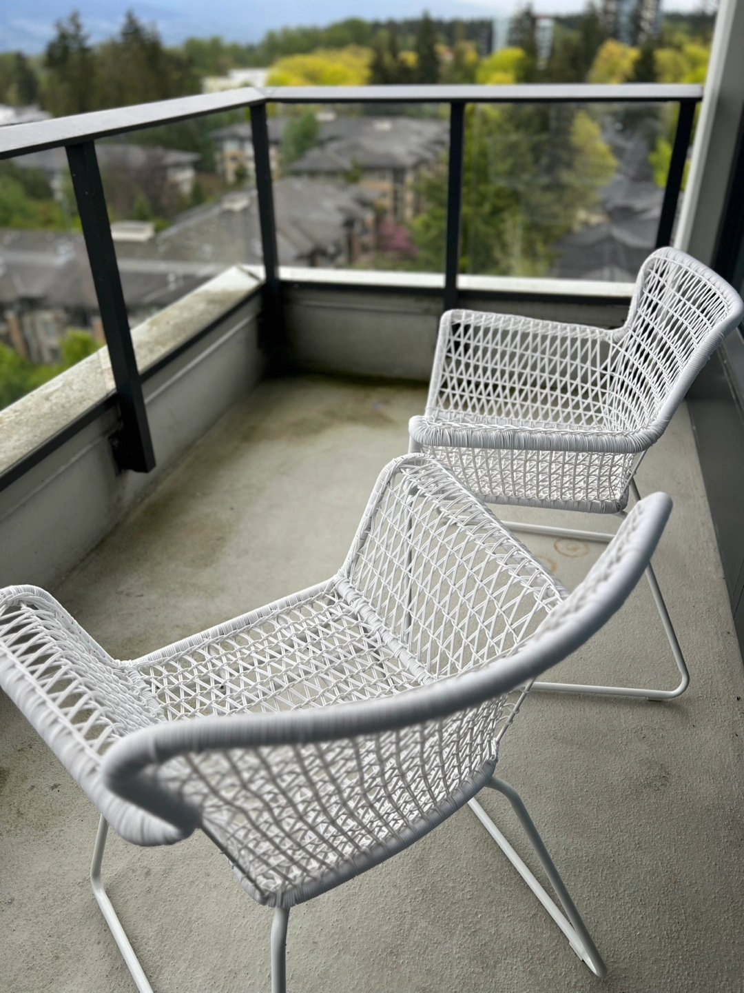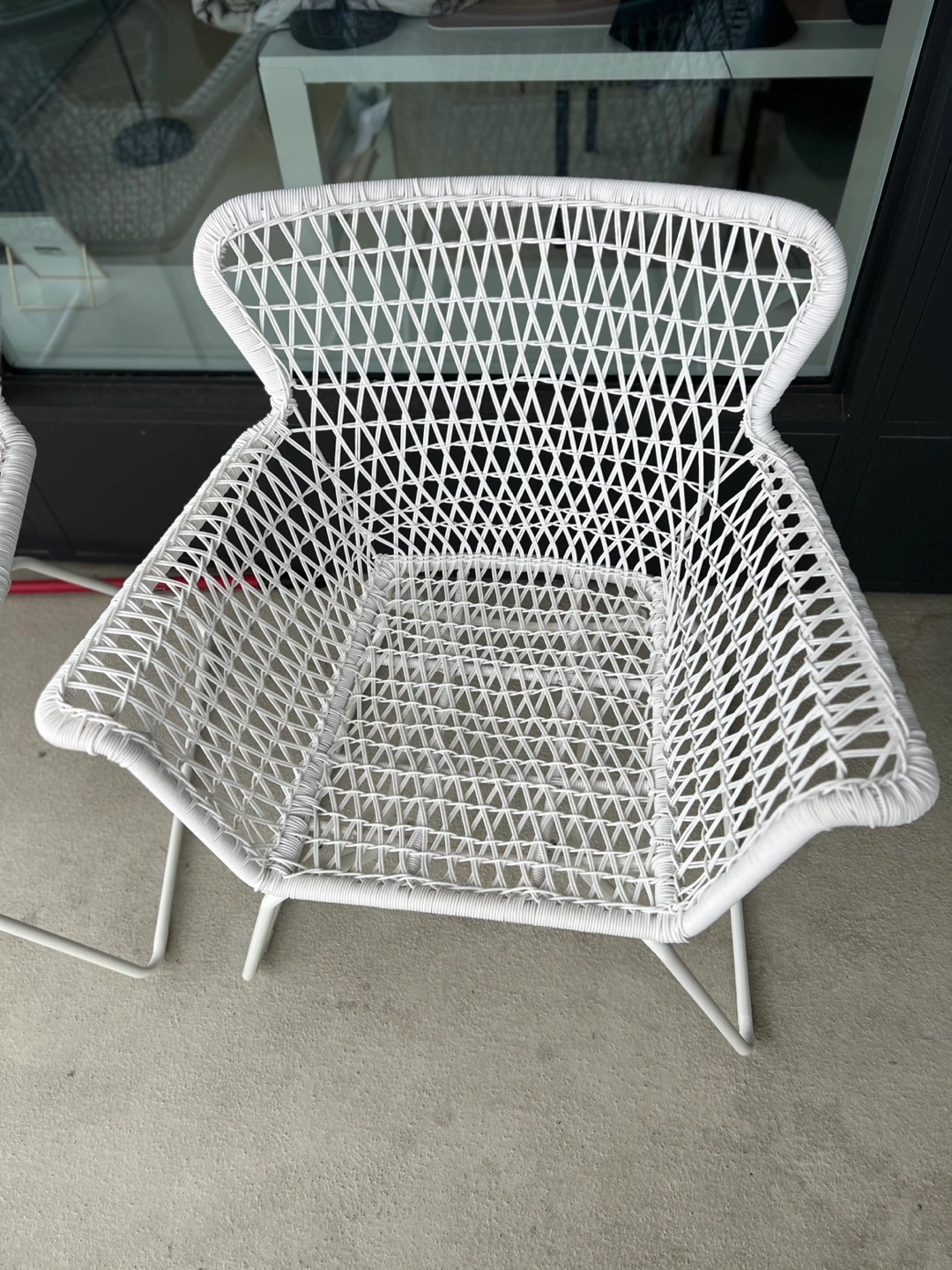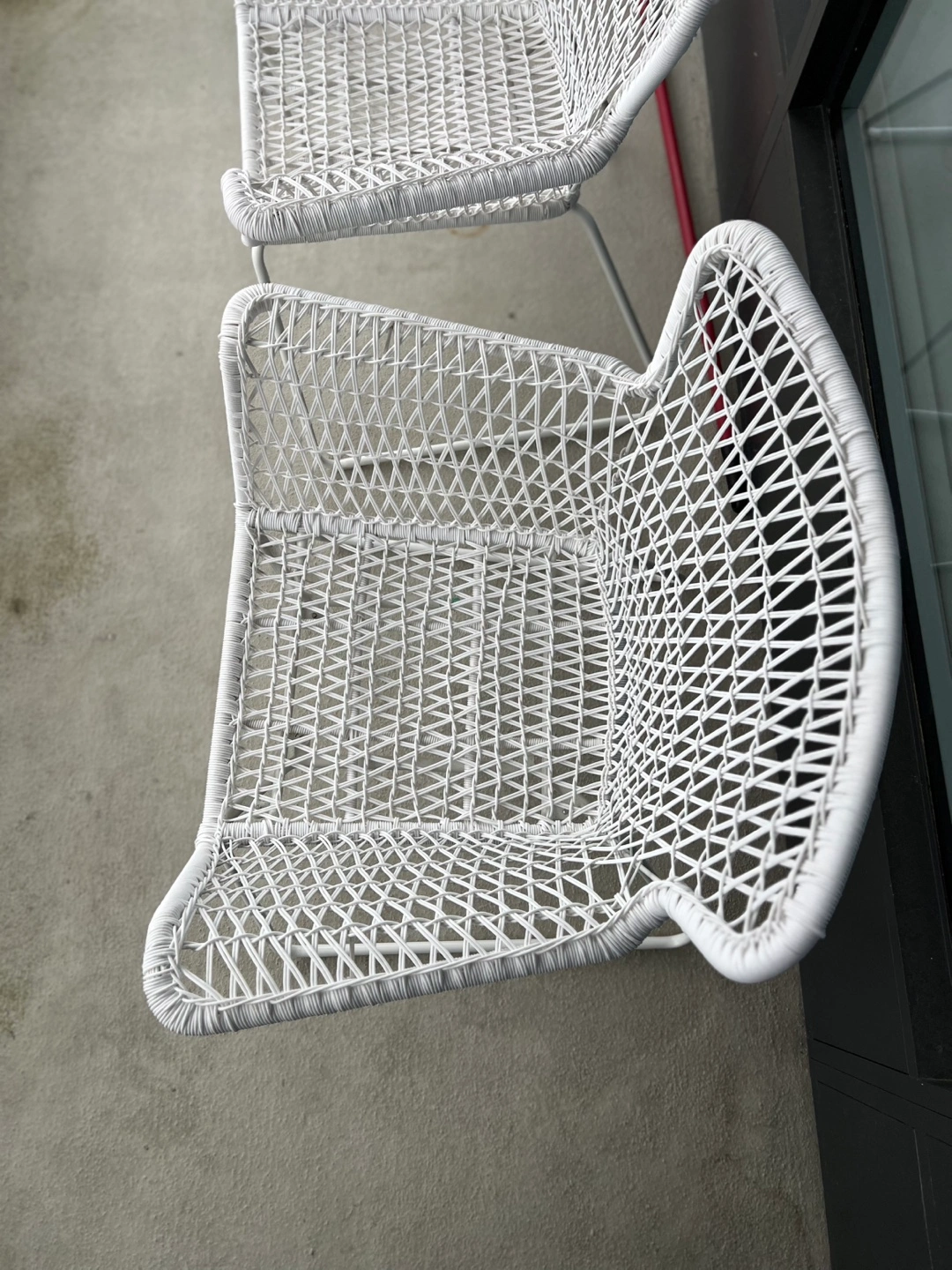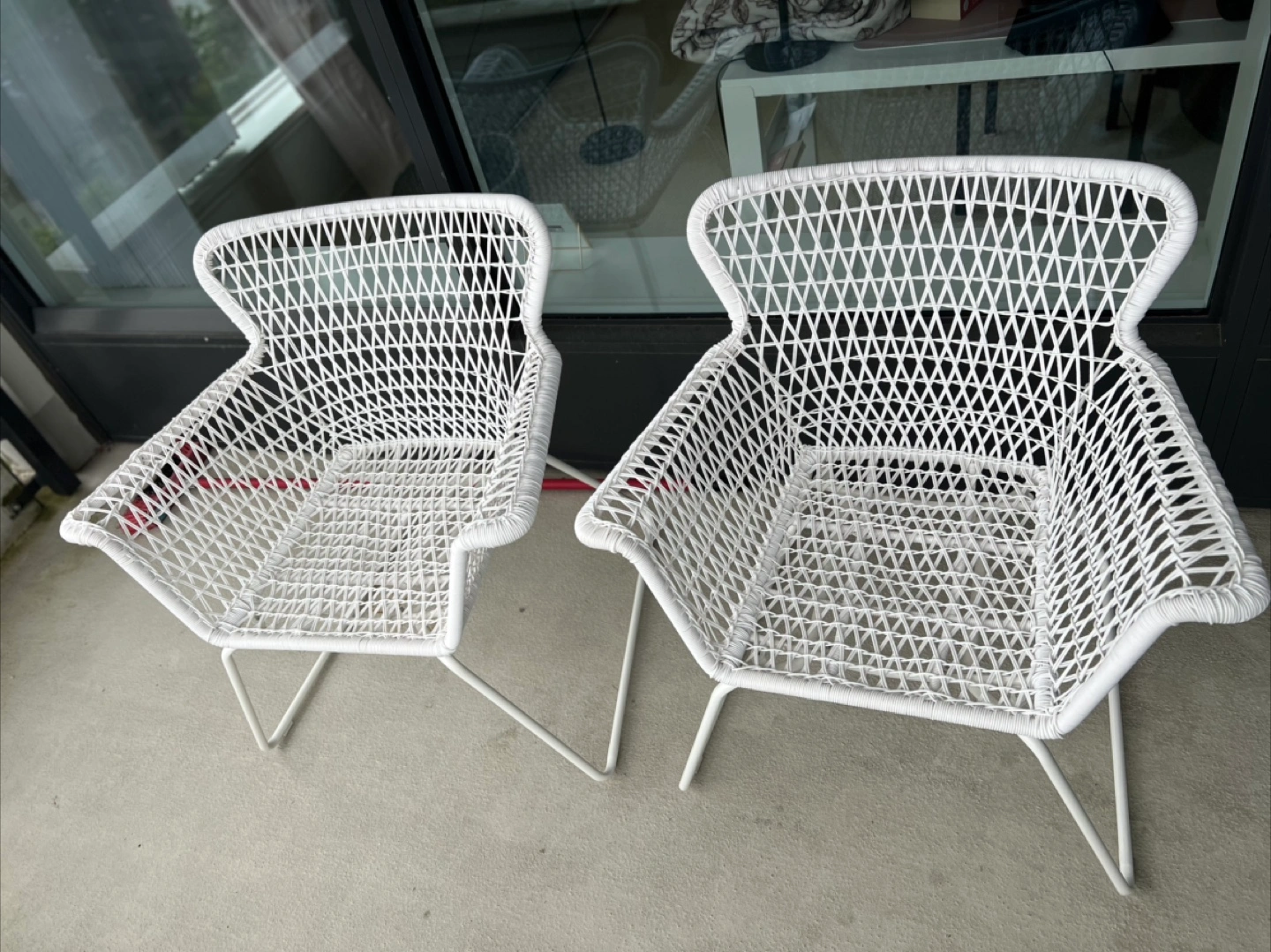 Two white IKEA Hogsten outdoor chairs. Sleek modern design. Metal frame. Perfect for a balcony or patio. Very lightly used for 8 months. Pick up from UBC or South Vancouver. $75 each.