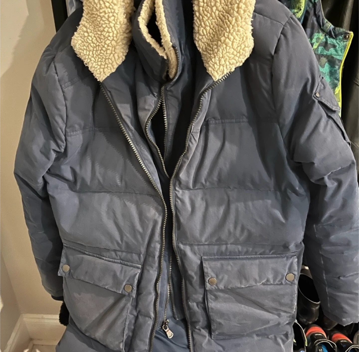65Selling a Pajar down jacket in size large. It's in great condition and perfect for the Canadian winter! The jacket features a cozy fur-lined hood and plenty of pockets.