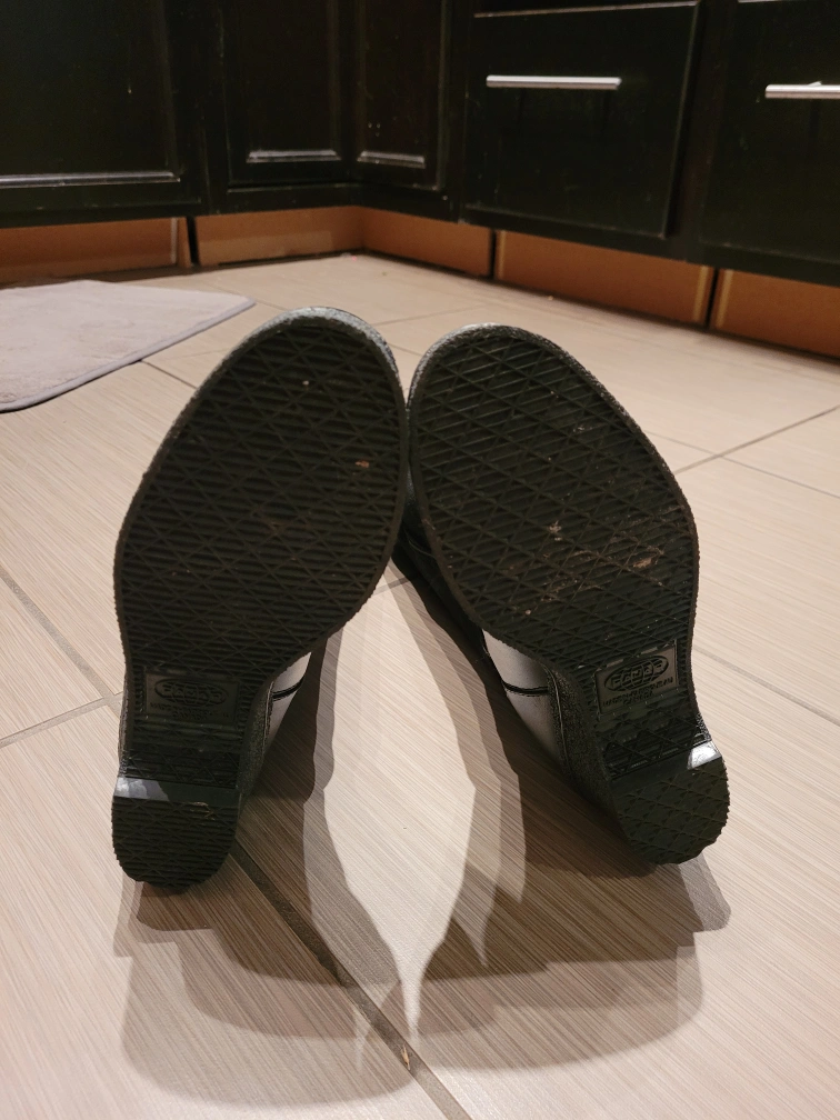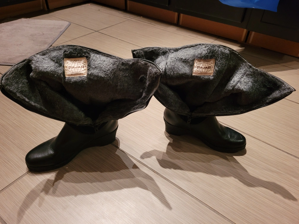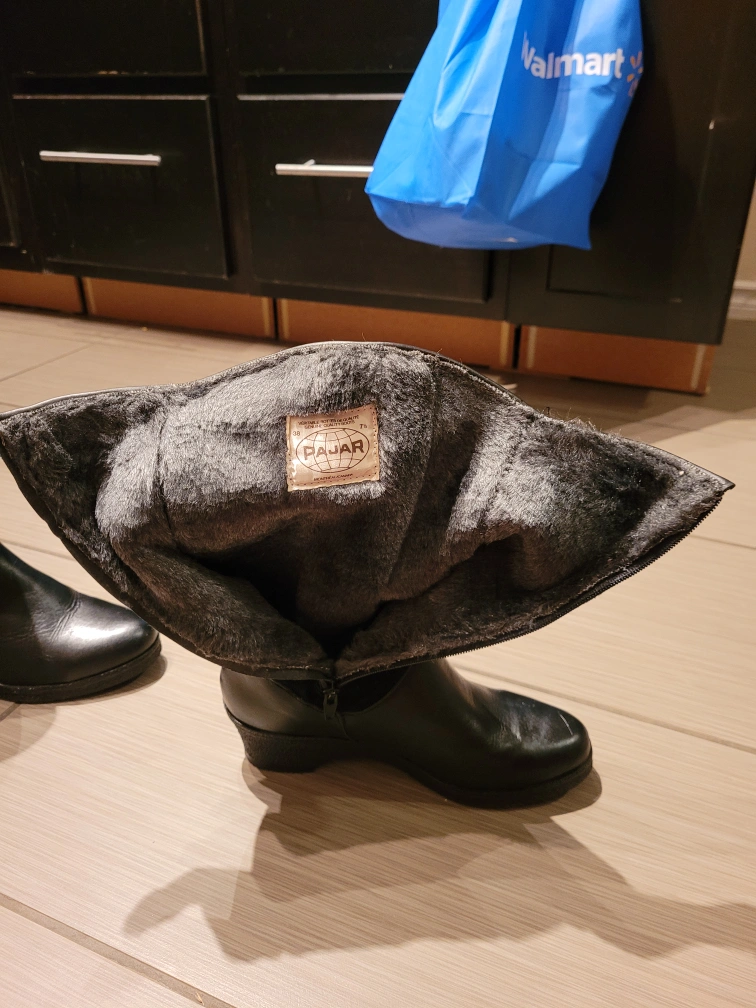 15Black leather boots with a wedge heel and suede accents. They are lined with faux fur and have a zipper on the inside of the boot. Asking $20 if interested please contact me