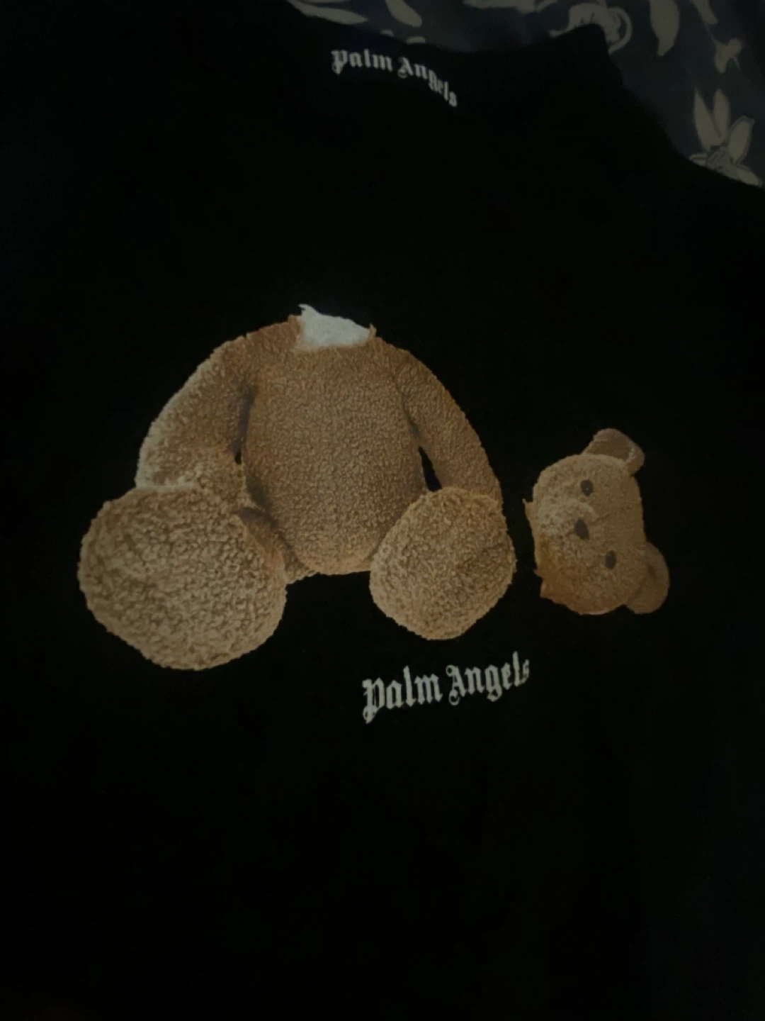10Selling a black Palm Angels t-shirt featuring the iconic teddy bear design. It's in great condition and made from a soft, comfortable material. The shirt has the Palm Angels logo on the front and back.
