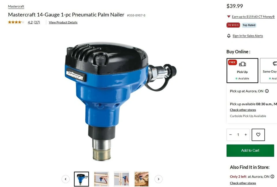 2114 Gauge 1-pc Pneumatic Palm Nailer Retails for $40.00 + tax