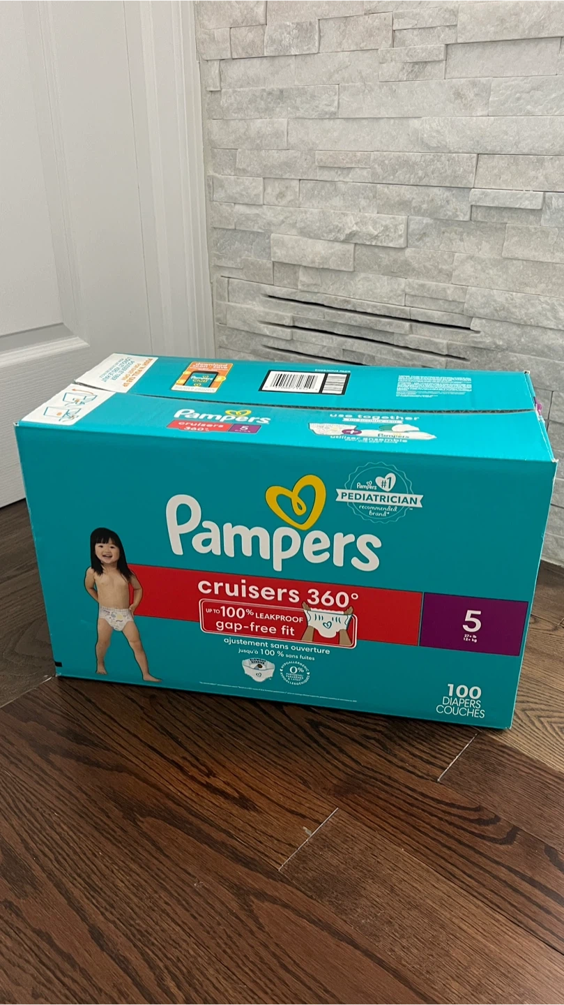 18Selling a box of Pampers Cruisers 360° diapers in size 5. The box contains 100 diapers. These diapers have up to 100% leakproof protection with a gap-free fit. Unopened Pampers Diapers for $25