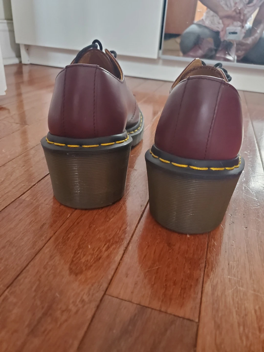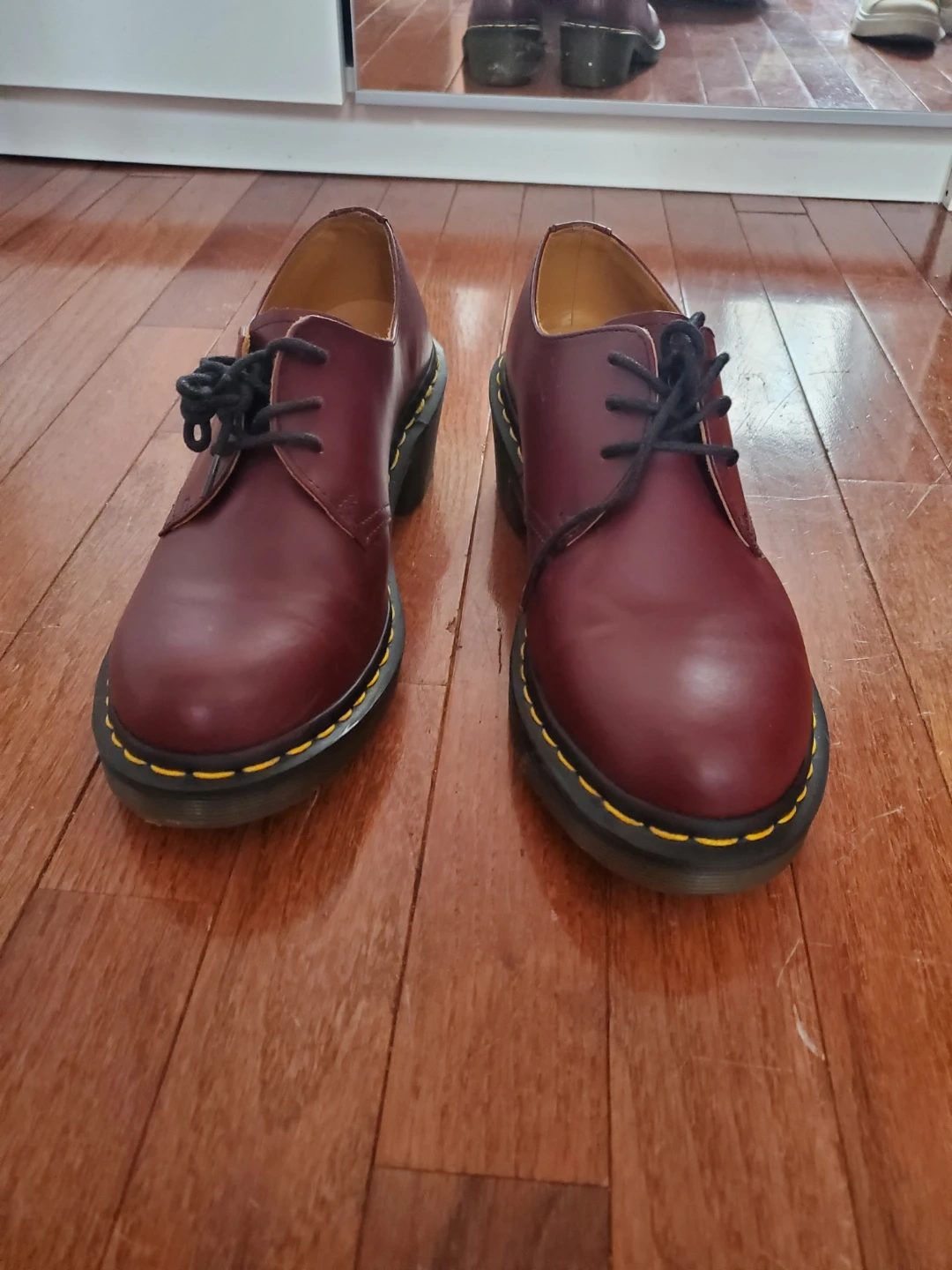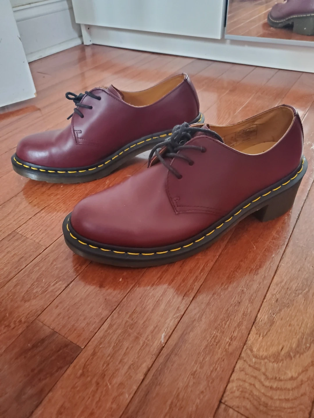 ONLY WORN TWICE. Selling a pair of Dr. Martens oxfords in a beautiful burgundy leather! These have a unique heeled design that adds a bit of flair to the classic style. They're in great condition and ready for a new owner!