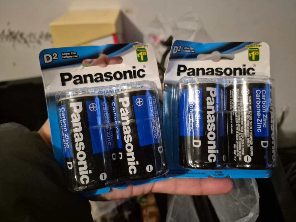 1000+Selling two packs of Panasonic D batteries, each containing 4 batteries. These are Carbon Zinc batteries. Originally priced at $1.25 each