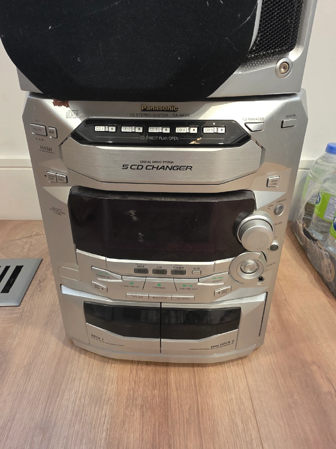 Selling a Panasonic SA-AK29 CD stereo system. It features a 5 CD changer and a super woofer for great sound quality. Perfect for playing your favourite CDs and tapes!
