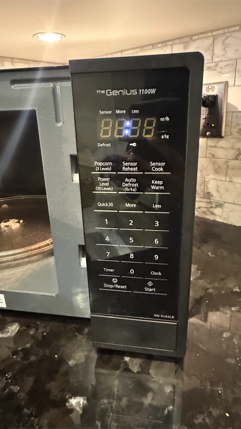 60Selling a Panasonic "The Genius" 1100W microwave in black. It's in great condition and ready to use! Features include sensor cooking, auto defrost, and a keep warm function. Model number is NN-SU65LB.