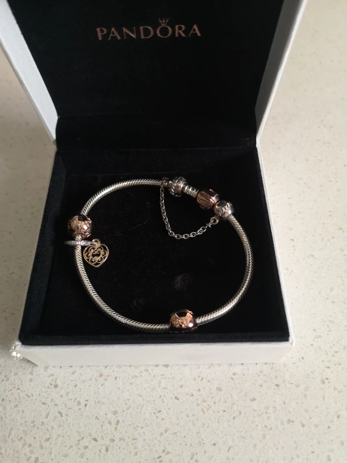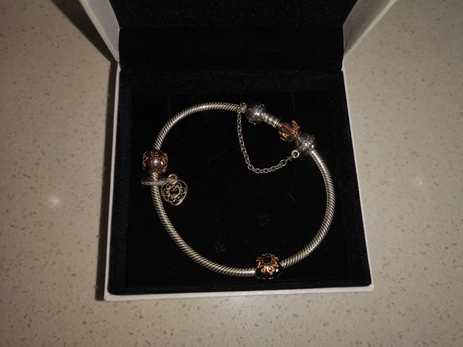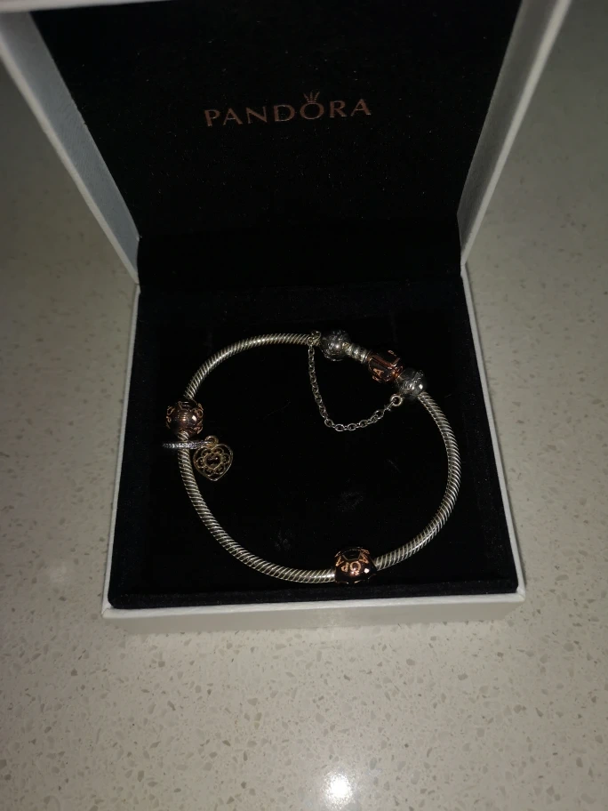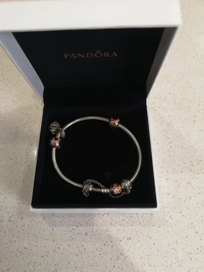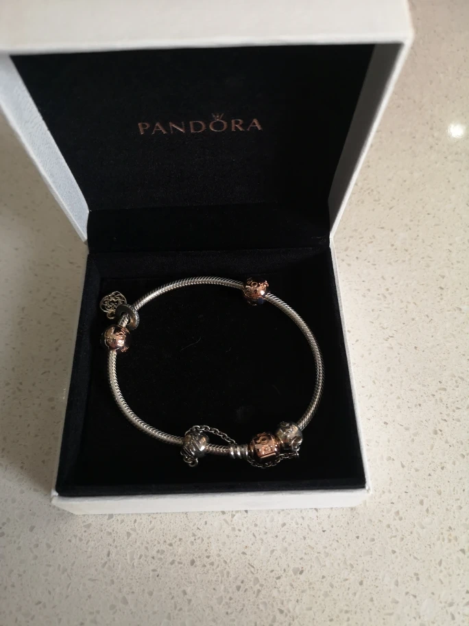 Selling a lovely Pandora bracelet complete with various charms! It comes in its original box, perfect for gifting or keeping it safe. The bracelet is in great condition and ready for a new home!