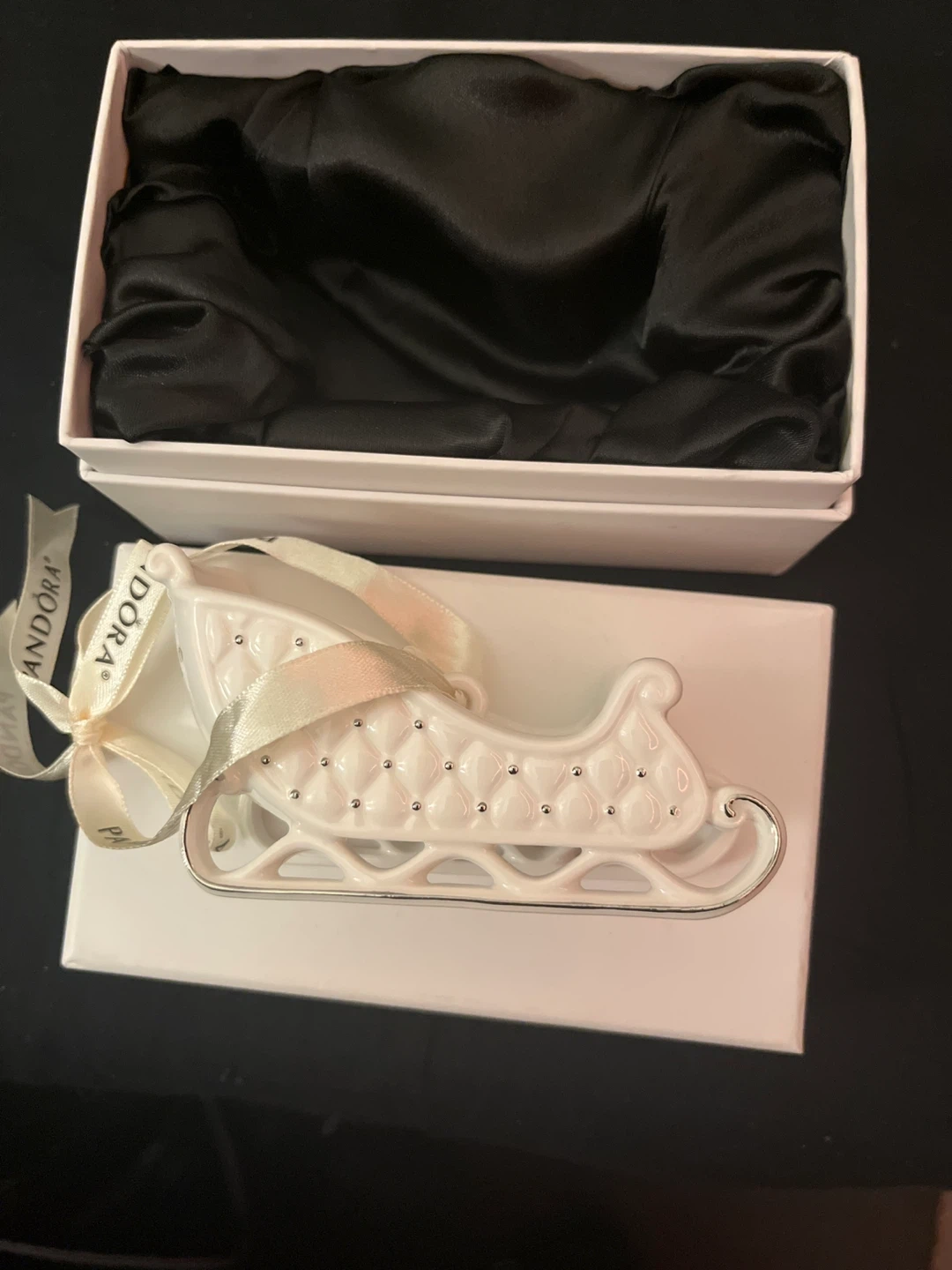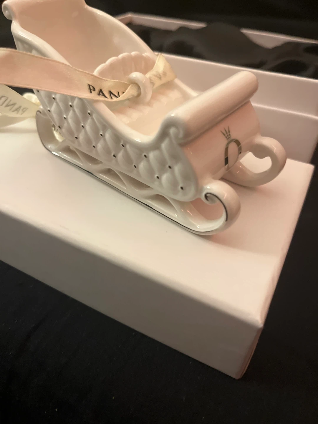 Selling a Pandora sleigh Christmas ornament. It's in great condition and comes with the original box! Perfect for the holidays