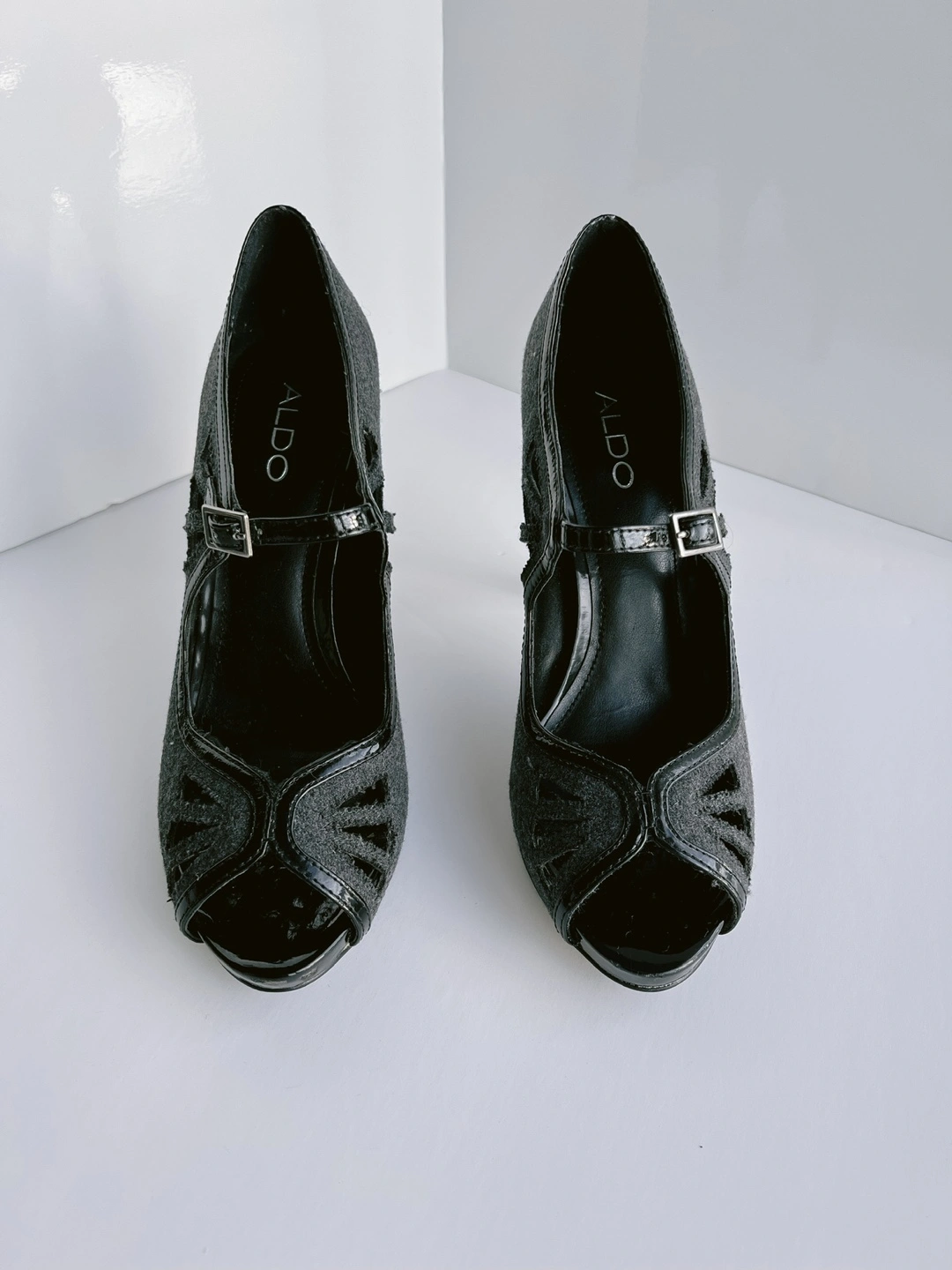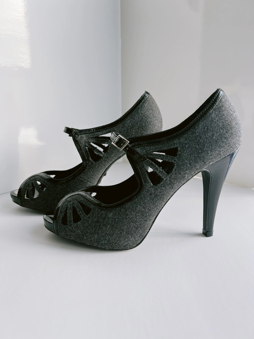 Stylist Closet Sale ✨ Retro Grey / Black Heels - Like New