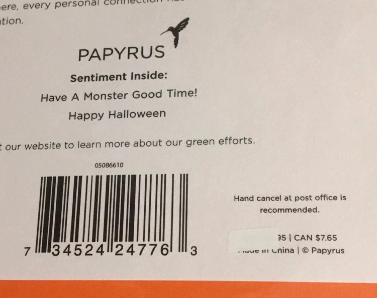 I'm selling a set of three Papyrus Halloween cards. Each card comes with its original envelope and features unique Halloween-themed designs. Originally, they were $7.65 each at the store. These cards are perfect for sending spooky greetings to your loved ones this Halloween season!