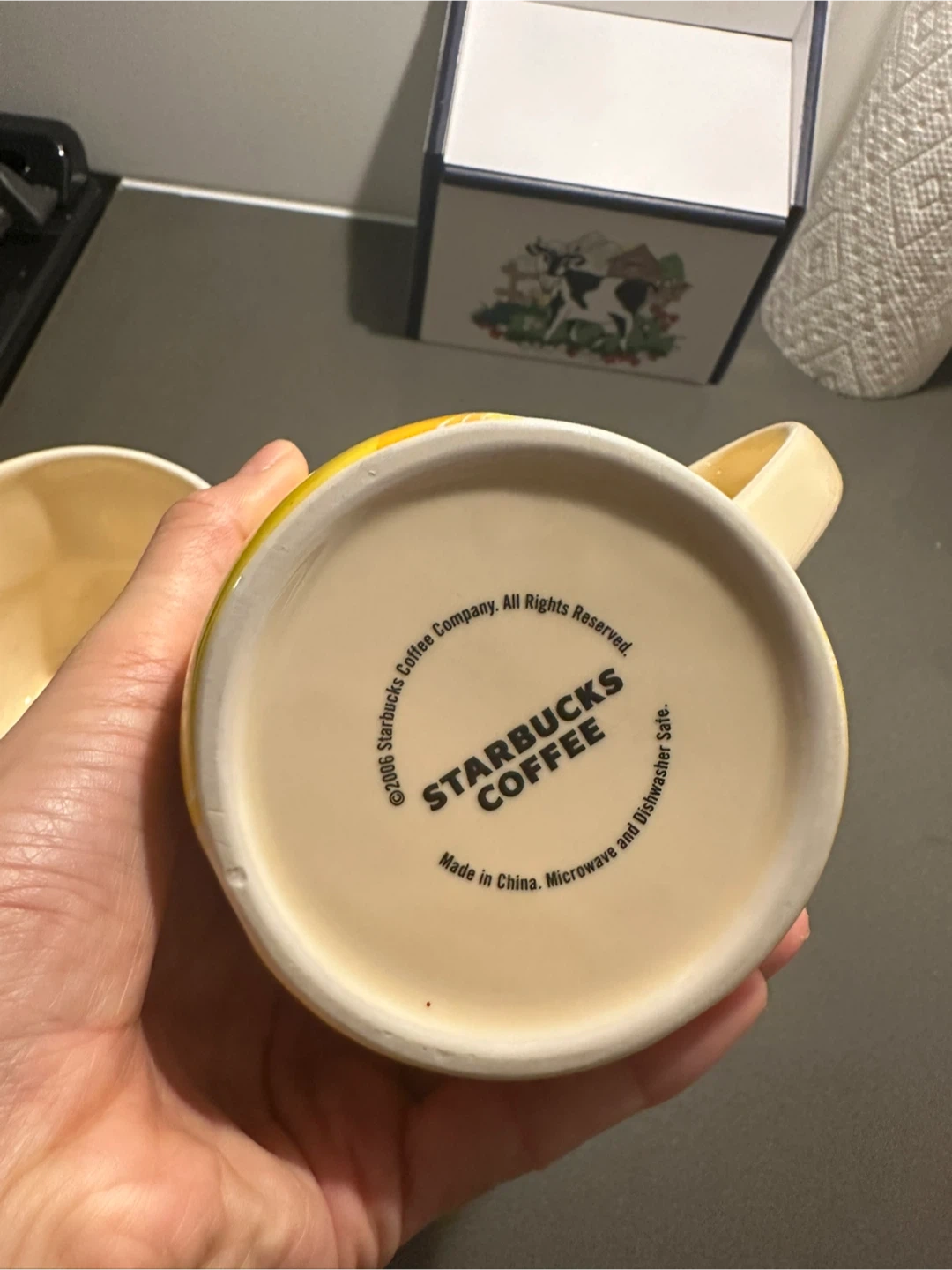 Here are two Starbucks coffee mugs, one with a lemon design and the other with a lime design! They are in great condition and ready for a new home. Perfect for adding a touch of zest to your morning coffee or tea!
