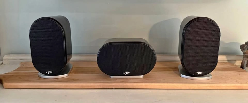 60Left, center, right speakers. Good shape with only minor wear marks. Sound amazingly clear for small speakers. Perfect for apartment or condo.